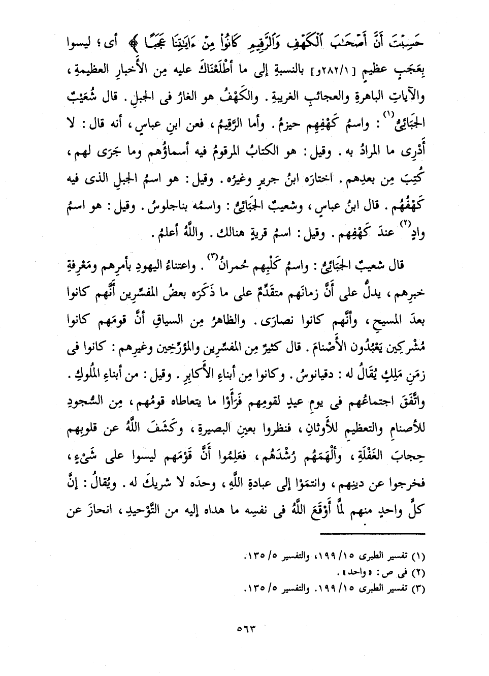 {أَمْ حَسِبْتَ أَنَّ أَصْحَابَ الْكَهْفِ وَالرَّقِيمِ كَانُوا مِنْ آيَاتِنَا عَجَبًا} [الكهف: 9] أَيْ: لَيْسُوا بِعَجَبٍ عَظِيمٍ بِالنِّسْبَةِ إِلَى مَا أَطْلَعْنَاكَ عَلَيْهِ مِنَ الْأَخْبَارِ الْعَظِيمَةِ، وَالْآيَاتِ الْبَاهِرَةِ وَالْعَجَائِبِ الْغَرِيبَةِ. وَالْكَهْفُ هُوَ الْغَارُ فِي الْجَبَلِ. قَالَ شُعَيْبٌ الْجَبَائِيُّ: وَاسْمُ كَهْفِهِمْ حَيْزَمُ. وَأَمَّا الرَّقِيمُ فَعَنِ ابْنِ عَبَّاسٍ، أَنَّهُ قَالَ: لَا أَدْرِي مَا الْمُرَادُ بِهِ. وَقِيلَ: هُوَ الْكِتَابُ الْمَرْقُومُ فِيهِ أَسْمَاؤُهُمْ وَمَا جَرَى لَهُمْ، كُتِبَ مِنْ بَعْدِهِمُ. اخْتَارَهُ ابْنُ جَرِيرٍ وَغَيْرُهُ. وَقِيلَ: هُوَ اسْمُ الْجَبَلِ الَّذِي فِيهِ كَهْفُهُمْ. قَالَ ابْنُ عَبَّاسٍ، وَشُعَيْبٌ الْجَبَائِيُّ: وَاسْمُهُ بَنَاجْلُوسُ. وَقِيلَ: هُوَ اسْمُ وَادٍ عِنْدَ كَهْفِهِمْ. وَقِيلَ: اسْمُ قَرْيَةٍ هُنَالِكَ. وَاللَّهُ أَعْلَمُ.