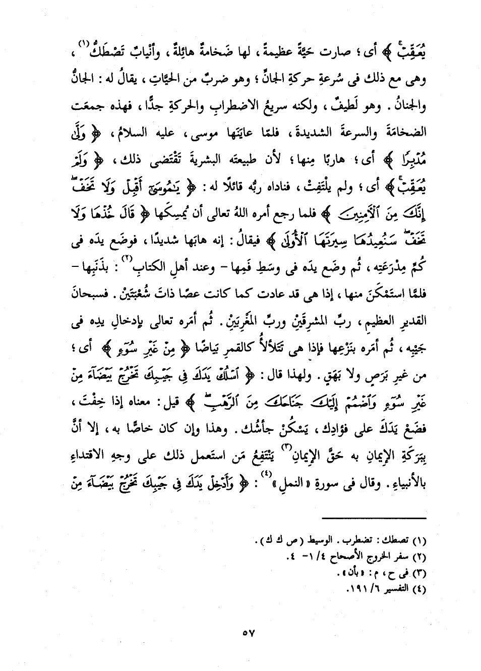 أَيْ; صَارَتْ حَيَّةً عَظِيمَةً لَهَا ضَخَامَةٌ هَائِلَةٌ، وَأَنْيَابٌ تَصْطَكُّ، وَهِيَ مَعَ ذَلِكَ فِي سُرْعَةِ حَرَكَةِ الْجَانِّ، وَهُوَ ضَرْبٌ مِنَ الْحَيَّاتِ يُقَالُ لَهُ: الْجَانُّ وَالْجَنَانُ. وَهُوَ لَطِيفٌ، وَلَكِنَّهُ سَرِيعُ الِاضْطِرَابِ وَالْحَرَكَةِ جِدًّا، فَهَذِهِ جَمَعَتِ الضَّخَامَةَ وَالسُّرْعَةَ الشَّدِيدَةَ فَلَمَّا عَايَنَهَا مُوسَى، عَلَيْهِ السَّلَامُ، وَلَّى مُدَبِّرًا أَيْ; هَارِبًا مِنْهَا; لِأَنَّ طَبِيعَتَهُ الْبَشَرِيَّةَ تَقْتَضِي ذَلِكَ وَلَمْ يُعَقِّبْ أَيْ; وَلَمْ يَلْتَفِتْ فَنَادَاهُ رَبُّهُ قَائِلًا لَهُ: {يَامُوسَى أَقْبِلْ وَلَا تَخَفْ إِنَّكَ مِنَ الْآمِنِينَ} [القصص: 31] فَلَمَّا رَجَعَ أَمَرَهُ اللَّهُ تَعَالَى أَنْ يُمْسِكَهَا قَالَ {خُذْهَا وَلَا تَخَفْ سَنُعِيدُهَا سِيرَتَهَا الْأُولَى} [طه: 21] فَيُقَالُ: إِنَّهُ هَابَهَا شَدِيدًا، فَوَضَعَ يَدَهُ فِي كُمِّ مِدْرَعَتِهِ، ثُمَّ وَضَعَ يَدَهُ فِي وَسَطِ فَمِهَا - وَعِنْدَ أَهْلِ الْكِتَابِ: بِذَنَبِهَا - فَلَمَّا اسْتَمْكَنَ مِنْهَا، إِذَا هِيَ قَدْ عَادَتْ كَمَا كَانَتْ عَصًا ذَاتَ شُعْبَتَيْنِ. فَسُبْحَانُ الْقَدِيرِ الْعَظِيمِ رَبِّ الْمَشْرِقَيْنِ وَالْمَغْرِبَيْنِ. ثُمَّ أَمَرَهُ تَعَالَى بِإِدْخَالِ يَدِهِ فِي جَيْبِهِ، ثُمَّ أَمَرَهُ بِنَزْعِهَا فَإِذَا هِيَ تَتَلَأْلَأُ كَالْقَمَرِ بَيَاضًا مِنْ غَيْرِ سُوءٍ أَيْ; مِنْ غَيْرِ بَرَصٍ وَلَا بَهَقٍ. وَلِهَذَا قَالَ: {اسْلُكْ يَدَكَ فِي جَيْبِكَ تَخْرُجْ بَيْضَاءَ مِنْ غَيْرِ سُوءٍ وَاضْمُمْ إِلَيْكَ جَنَاحَكَ مِنَ الرَّهْبِ} [القصص: 32] قِيلَ: مَعْنَاهُ إِذَا خِفْتَ فَضَعْ يَدَكَ عَلَى فُؤَادِكَ يَسْكُنْ جَأْشُكَ. وَهَذَا وَإِنْ كَانَ خَاصًّا بِهِ، إِلَّا أَنَّ بِبَرَكَةِ الْإِيمَانِ بِهِ حَقَّ الْإِيمَانِ يَنْتَفِعُ مَنِ اسْتَعْمَلَ ذَلِكَ عَلَى وَجْهِ الِاقْتِدَاءِ بِالْأَنْبِيَاءِ. وَقَالَ فِي سُورَةِ " النَّمْلِ ": {وَأَدْخِلْ يَدَكَ فِي جَيْبِكَ تَخْرُجْ بَيْضَاءَ مِنْ غَيْرِ سُوءٍ فِي تِسْعِ آيَاتٍ إِلَى فِرْعَوْنَ وَقَوْمِهِ إِنَّهُمْ كَانُوا قَوْمًا فَاسِقِينَ} [النمل: 12] .