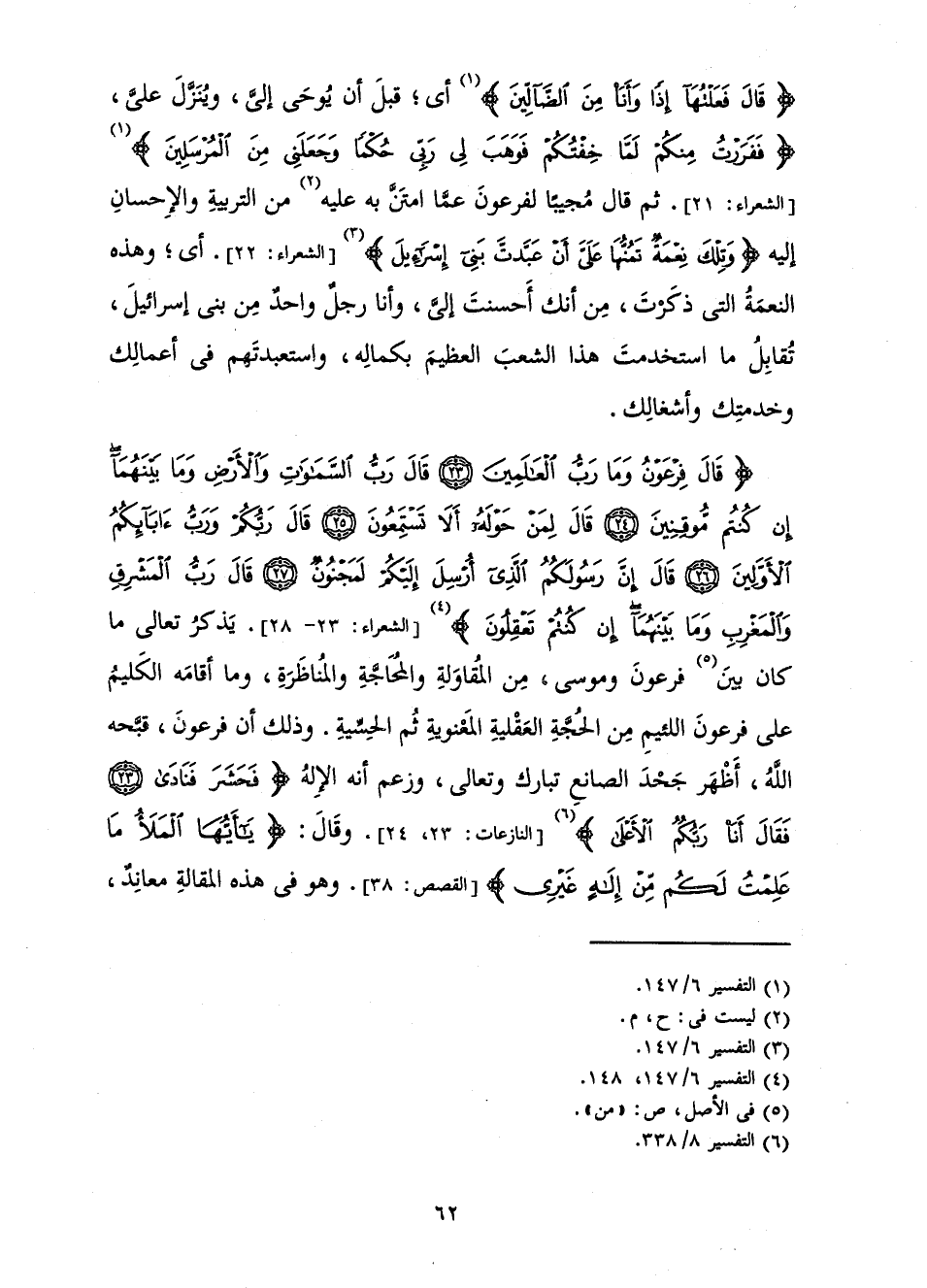 {قَالَ فِرْعَوْنُ وَمَا رَبُّ الْعَالَمِينَ - قَالَ رَبُّ السَّمَاوَاتِ وَالْأَرْضِ وَمَا بَيْنَهُمَا إِنْ كُنْتُمْ مُوقِنِينَ - قَالَ لِمَنْ حَوْلَهُ أَلَا تَسْتَمِعُونَ - قَالَ رَبُّكُمْ وَرَبُّ آبَائِكُمُ الْأَوَّلِينَ - قَالَ إِنَّ رَسُولَكُمُ الَّذِي أُرْسِلَ إِلَيْكُمْ لَمَجْنُونٌ - قَالَ رَبُّ الْمَشْرِقِ وَالْمَغْرِبِ وَمَا بَيْنَهُمَا إِنْ كُنْتُمْ تَعْقِلُونَ} [الشعراء: 23 - 28]