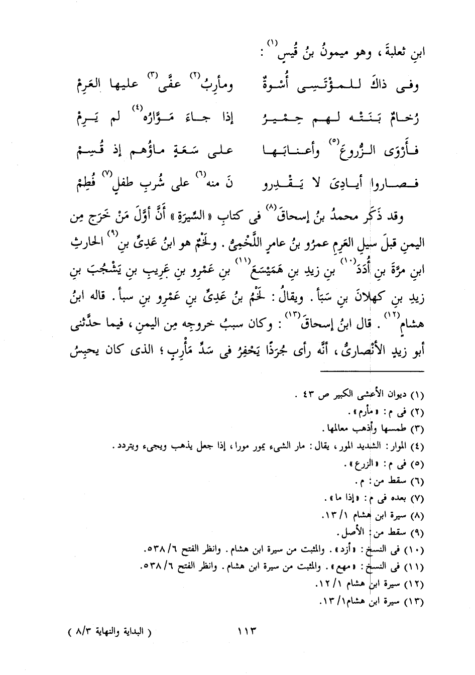 وَفِي ذَاكَ لِلْمُؤْتَسِي أُسْوَةٌ ... وَمَأْرِبُ عَفَّى عَلَيْهَا الْعَرِمْ