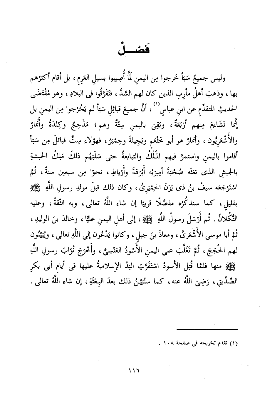 وَلَيْسَ جَمِيعُ سَبَأٍ خَرَجُوا مِنَ الْيَمَنِ لَمَّا أُصِيبُوا بِسَيْلِ الْعَرِمِ بَلْ أَقَامَ أَكْثَرُهُمْ بِهَا، وَذَهَبَ أَهْلُ مَأْرِبٍ الَّذِينَ كَانَ لَهُمُ السَّدُّ فَتَفَرَّقُوا فِي الْبِلَادِ وَهُوَ مُقْتَضَى الْحَدِيثِ الْمُتَقَدِّمِ عَنِ ابْنِ عَبَّاسٍ أَنَّ جَمِيعَ قَبَائِلِ سَبَأٍ لَمْ يَخْرُجُوا مِنَ الْيَمَنِ بَلْ إِنَّمَا تَشَاءَمَ مِنْهُمْ أَرْبَعَةٌ، وَبَقِيَ بِالْيَمَنِ سِتَّةٌ، وَهُمْ مَذْحِجٌ وَكِنْدَةُ وَأَنْمَارٌ وَالْأَشْعَرِيُّونَ، وَأَنْمَارٌ هُوَ أَبُو خَثْعَمٍ وَبَجِيلَةَ وَحِمْيَرُ فَهَؤُلَاءِ سِتُّ قَبَائِلَ مِنْ سَبَأٍ أَقَامُوا بِالْيَمَنِ، وَاسْتَمَرَّ فِيهِمُ الْمُلْكُ وَالتَّبَابِعَةُ حَتَّى سَلَبَهُمْ ذَلِكَ مَلِكُ الْحَبَشَةِ بِالْجَيْشِ الَّذِي بَعَثَهُ صُحْبَةَ أَمِيرَيْهِ أَبْرَهَةَ وَأَرْيَاطَ، نَحْوًا مِنْ سَبْعِينَ سَنَةً، ثُمَّ اسْتَرْجَعَهُ سَيْفُ بْنُ ذِي يَزَنَ الْحِمْيَرِيُّ وَكَانَ ذَلِكَ قَبْلَ مَوْلِدِ رَسُولِ اللَّهِ صَلَّى اللَّهُ عَلَيْهِ وَسَلَّمَ بِقَلِيلٍ، كَمَا سَنَذْكُرُهُ مُفَصَّلًا قَرِيبًا إِنْ شَاءَ اللَّهُ تَعَالَى، وَبِهِ الثِّقَةُ وَعَلَيْهِ التُّكْلَانُ. ثُمَّ أَرْسَلَ رَسُولُ اللَّهِ صَلَّى اللَّهُ عَلَيْهِ وَسَلَّمَ إِلَى أَهْلِ الْيَمَنِ عَلِيًّا وَخَالِدَ بْنَ الْوَلِيدِ، ثُمَّ أَبَا مُوسَى الْأَشْعَرِيَّ وَمُعَاذَ بْنَ جَبَلٍ كَانُوا يَدْعُونَ إِلَى اللَّهِ تَعَالَى، وَيُبَيِّنُونَ لَهُمُ الْحُجَجَ، ثُمَّ تَغَلَّبَ عَلَى الْيَمَنِ الْأَسْوَدُ الْعَنْسِيُّ، وَأَخْرَجَ نُوَّابَ رَسُولِ اللَّهِ صَلَّى اللَّهُ عَلَيْهِ وَسَلَّمَ مِنْهَا فَلَمَّا قُتِلَ الْأَسْوَدُ اسْتَقَرَّتِ الْيَدُ الْإِسْلَامِيَّةُ عَلَيْهَا فِي أَيَّامِ أَبِي بَكْرٍ الصَّدِيقِ رَضِيَ اللَّهُ عَنْهُ كَمَا سَنُبَيِّنُ ذَلِكَ بَعْدَ الْبَعْثَةِ إِنْ شَاءَ اللَّهُ تَعَالَى.