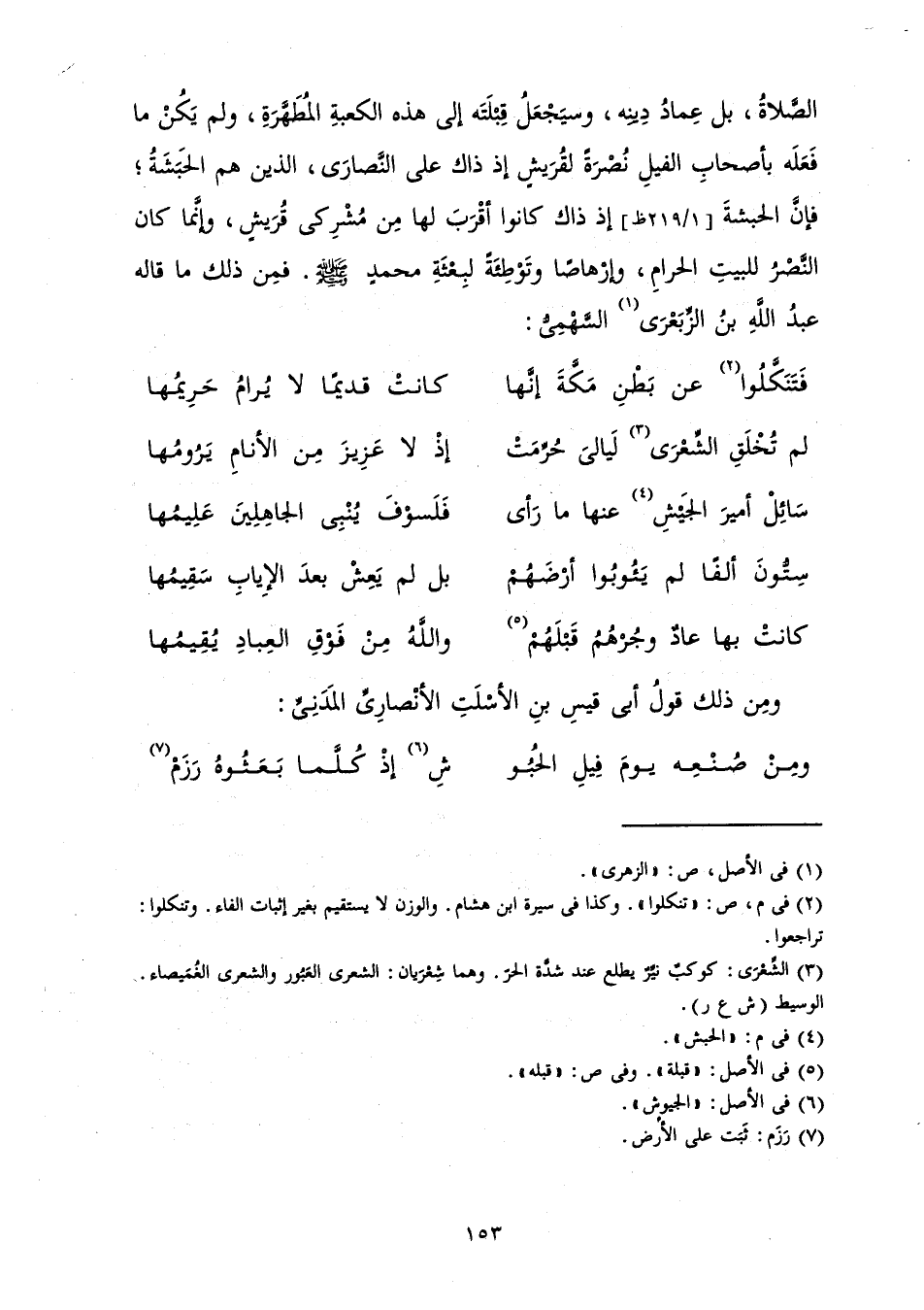 فَتَنَكَّلُوا عَنْ بَطْنِ مَكَّةَ إِنَّهَا كَانَتْ قَدِيمَا لَا يُرَامُ حَرِيمُهَا لَمْ تُخْلَقِ الشِّعْرَى لَيَالِيَ حُرِّمَتْ إِذْ لَا عَزِيزَ مِنَ الْأَنَامِ يَرُومُهَا سَائِلْ أَمِيَرَ الْجَيْشِ عَنْهَا مَا رَأَى فَلَسَوْفَ يُنْبِي الْجَاهِلِينَ عَلِيمُهَا سِتُّونَ أَلْفًا لَمْ يَئُوبُوا أَرْضَهُمْ بَلْ لَمْ يَعِشْ بَعْدَ الْإِيَابِ سَقِيمُهَا