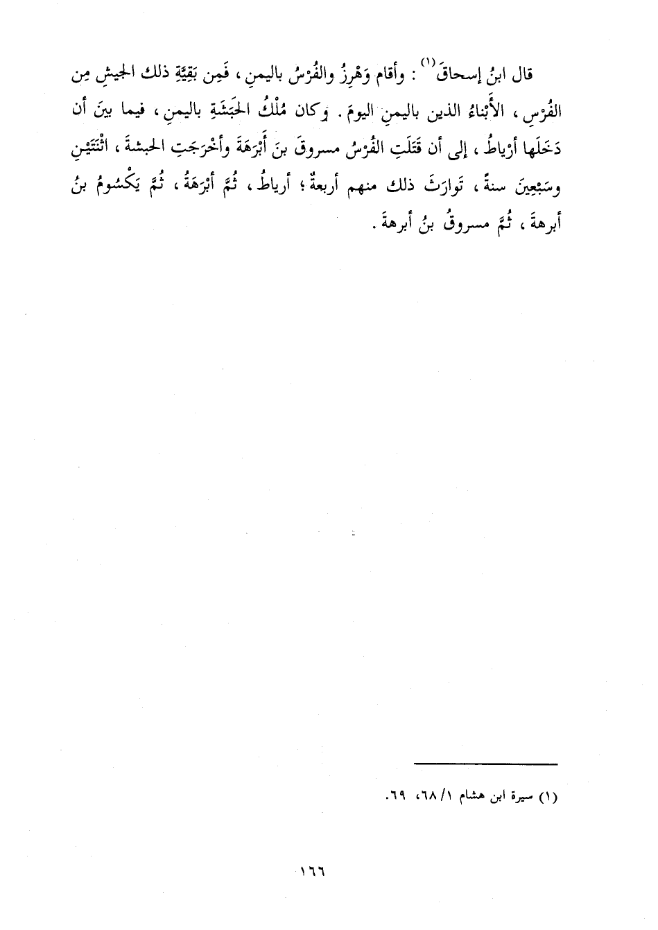 قَالَ ابْنُ إِسْحَاقَ: وَأَقَامَ وَهْرِزُ وَالْفُرْسُ بِالْيَمَنِ فَمِنْ بَقِيَّةِ ذَلِكَ الْجَيْشِ مِنَ الْفُرْسِ الْأَبْنَاءُ الَّذِينَ بِالْيَمَنِ الْيَوْمَ. وَكَانَ مَلِكُ الْحَبَشَةِ بِالْيَمَنِ فِيمَا بَيْنَ أَنْ دَخَلَهَا أَرْيَاطُ إِلَى أَنْ قَتَلَتِ الْفُرْسُ مَسْرُوقَ بْنَ أَبْرَهَةَ، وَأَخْرَجَتِ الْحَبَشَةَ اثْنَتَيْنِ وَسَبْعِينَ سَنَةً تَوَارَثَ ذَلِكَ مِنْهُمْ أَرْبَعَةٌ: أَرْيَاطُ، ثُمَّ أَبْرَهَةُ، ثُمَّ يَكْسُومُ بْنُ أَبْرَهَةَ، ثُمَّ مَسْرُوقُ بْنُ أَبْرَهَةَ.