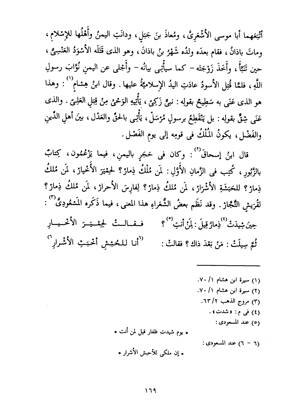 قَالَ ابْنُ إِسْحَاقَ: وَكَانَ فِي حِجَرٍ بِالْيَمَنِ فِيمَا يَزْعُمُونَ كِتَابٌ بِالزَّبُورِ كُتِبَ فِي الزَّمَانِ الْأَوَّلِ: لِمَنْ مُلْكُ ذِمَارٍ؟ لِحِمْيَرَ الْأَخْيَارِ لِمَنْ مُلْكُ ذِمَارٍ؟ لِلْحَبَشَةِ الْأَشْرَارِ لِمَنْ مُلْكُ ذِمَارْ؟ لِفَارِسَ الْأَحْرَارْ لِمَنْ مُلْكُ ذِمَارْ؟ لِقُرَيْشٍ التُّجَّارْ. وَقَدْ نَظَمَ بَعْضُ الشُّعَرَاءِ هَذَا الْمَعْنَى فِيمَا ذَكَرَهُ الْمَسْعُودِيُّ