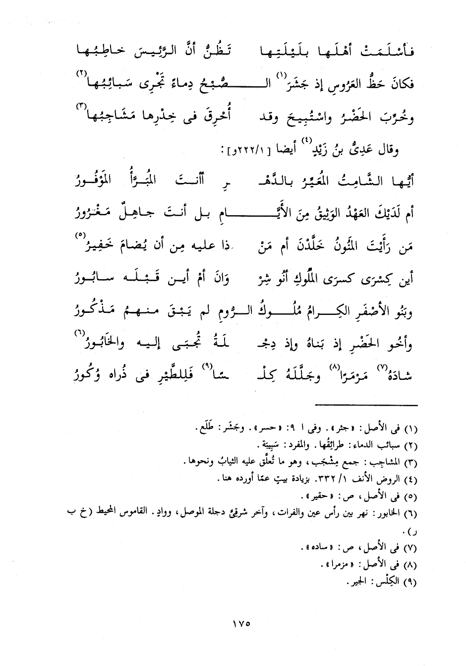 أَيْنَ كِسْرَى كِسْرَى الْمُلُوكِ أَنُوشِرْ ... وَانَ أَمْ أَيْنَ قَبْلَهُ سَابُورُ