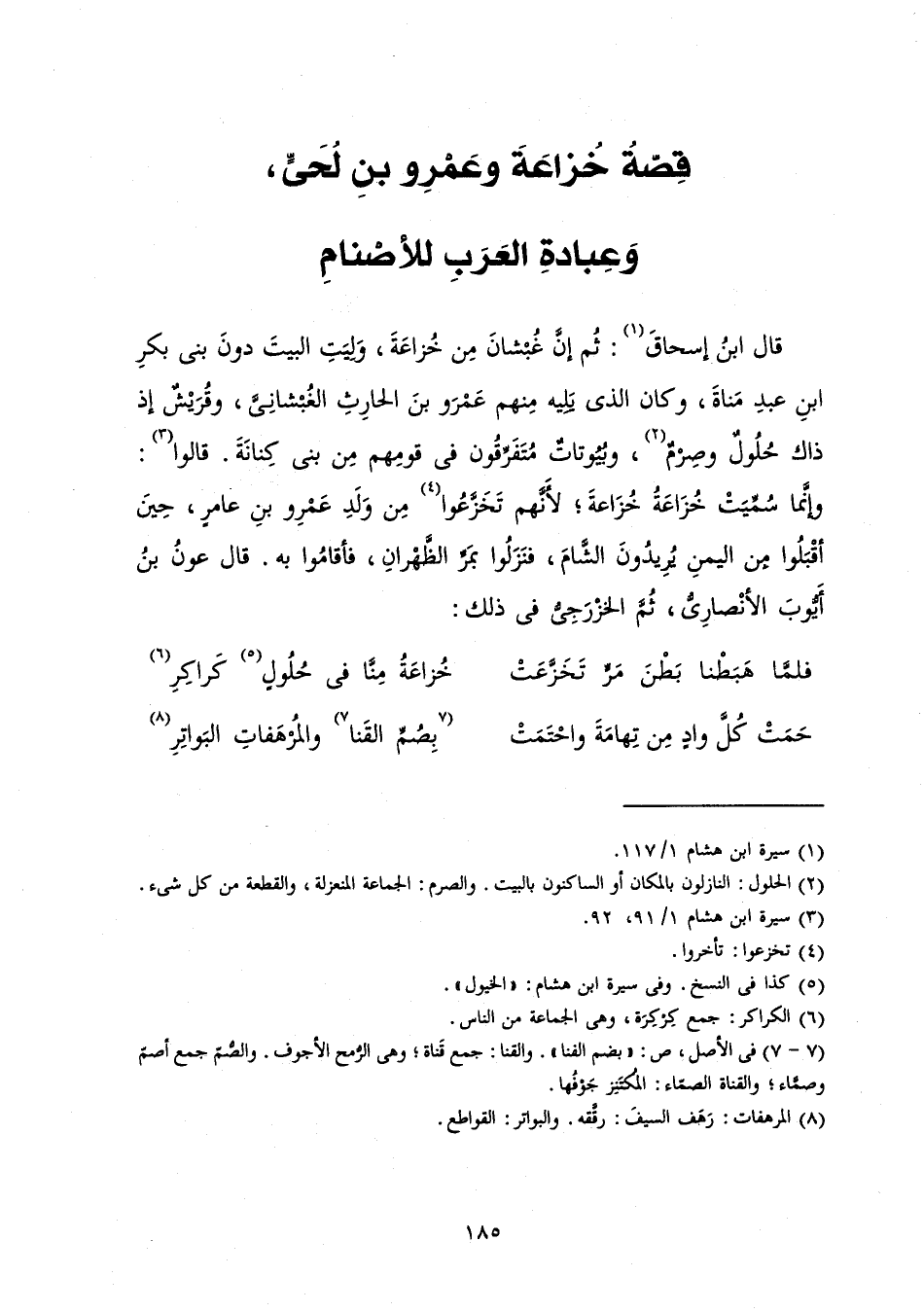 [قِصَّةُ خُزَاعَةَ وَعَمْرِو بْنِ لُحَيٍّ وَعِبَادَةِ الْعَرَبِ لِلْأَصْنَامِ]