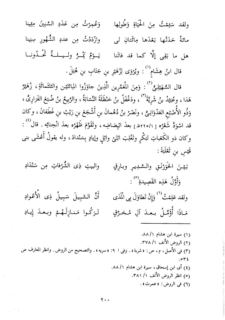 قَالَ ابْنُ هِشَامٍ: وَيُرْوَى لِزُهَيْرِ بْنِ جَنَابِ بْنِ هُبَلَ. قَالَ السُّهَيْلِيُّ: وَمِنَ الْمُعَمَّرِينَ الَّذِينَ جَاوَزُوا الْمِائَتَيْنِ وَالثَّلَاثَمِائَةٍ زُهَيْرٌ هَذَا، وَعُبَيْدُ بْنُ شَرِيَّةَ، وَدَغْفَلُ بْنُ حَنْظَلَةَ النَّسَّابَةُ وَالرَّبِيعُ بْنُ ضُبَعَ الْفَزَارِيُّ، وَذُو الْأُصْبُعِ الْعَدْوَانِيُّ، وَنَصْرُ بْنُ دُهْمَانَ بْنِ أَشْجَعَ بْنِ رَيْثِ بْنِ غَطَفَانَ وَكَانَ قَدِ اسْوَدَّ شَعْرُهُ بَعْدَ ابْيِضَاضِهِ، وَتَقَوَّمَ ظَهْرُهُ بَعْدَ اعْوِجَاجِهِ قَالَ: وَكَانَ ذُو الْكَعَبَاتِ لِبَكْرٍ وَتَغْلِبَ ابْنَيْ وَائِلٍ، وَإِيَادٍ بِسَنْدَادَ، وَلَهُ يَقُولُ أَعْشَى بْنُ قَيْسِ بْنِ ثَعْلَبَةَ