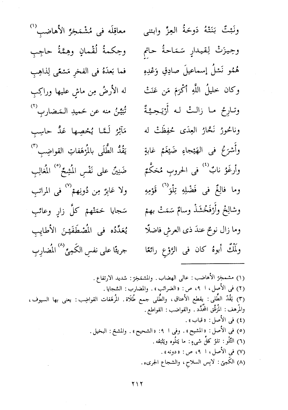 هُمُو نَسْلُ إِسْمَاعِيلَ صَادِقِ وَعْدِهِ ... فَمَا بَعْدَهُ فِي الْفَخْرِ مَسْعًى لِذَاهِبِ