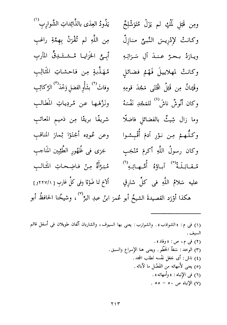 هَكَذَا أَوْرَدَ الْقَصِيدَةَ الشَّيْخُ أَبُو عُمَرَ ابْنِ عَبْدِ الْبَرِّ، وَشَيْخُنَا الْحَافِظُ