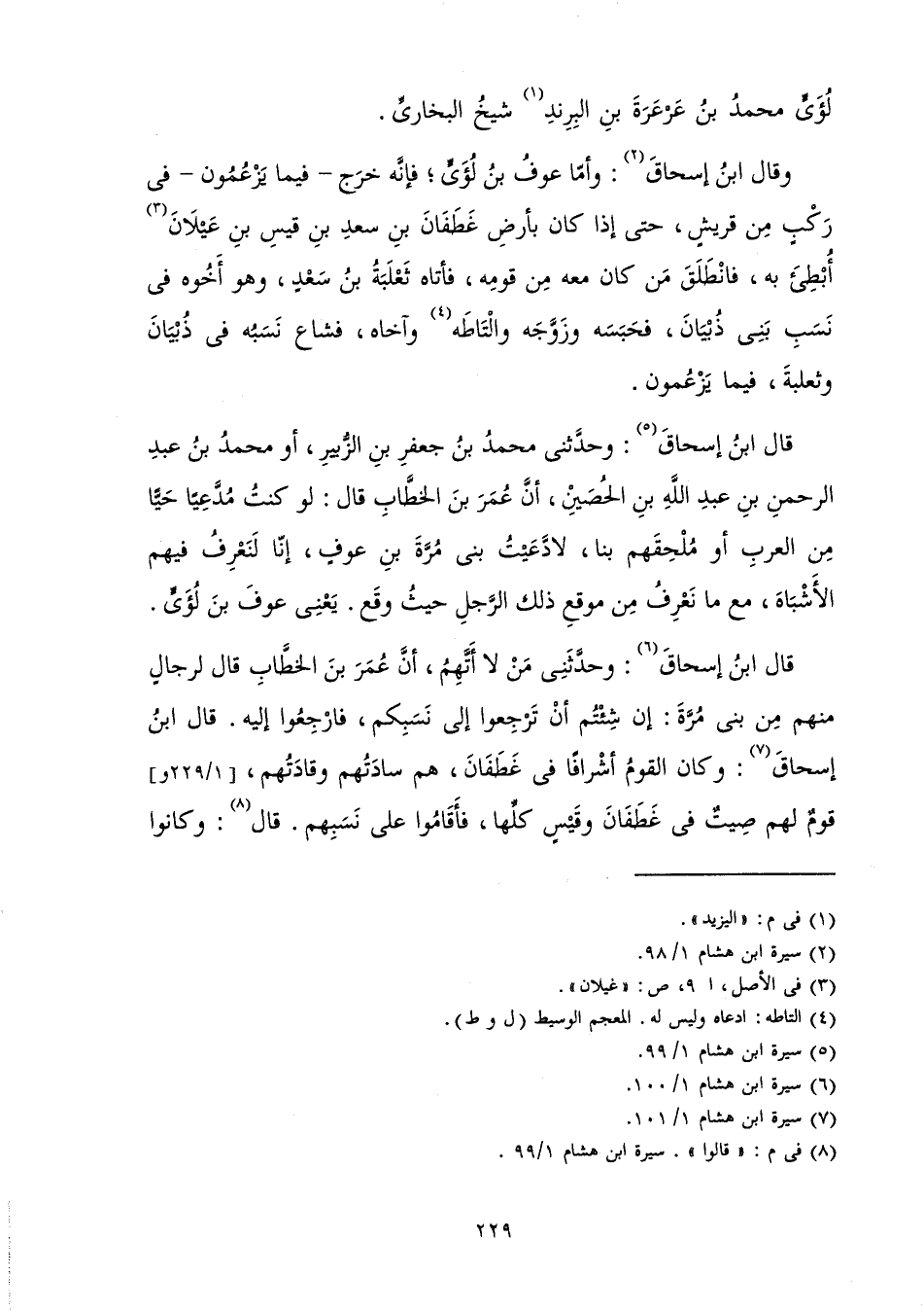 قَالَ ابْنُ إِسْحَاقَ: وَحَدَّثَنِي مَنْ لَا أَتَّهِمُ أَنَّ عُمَرَ بْنَ الْخَطَّابِ قَالَ لِرِجَالٍ مِنْهُمْ مِنْ بَنِي مُرَّةَ: إِنْ شِئْتُمْ أَنْ تَرْجِعُوا إِلَى نَسَبِكُمْ فَارْجِعُوا إِلَيْهِ. قَالَ ابْنُ إِسْحَاقَ: وَكَانَ الْقَوْمُ أَشْرَافًا فِي غَطَفَانَ هُمْ سَادَتُهُمْ، وَقَادَتُهُمْ قَوْمٌ لَهُمْ صِيتٌ فِي غَطَفَانَ وَقَيْسٍ كُلِّهَا فَأَقَامُوا عَلَى نَسَبِهِمْ، قَالَ: وَكَانُوا