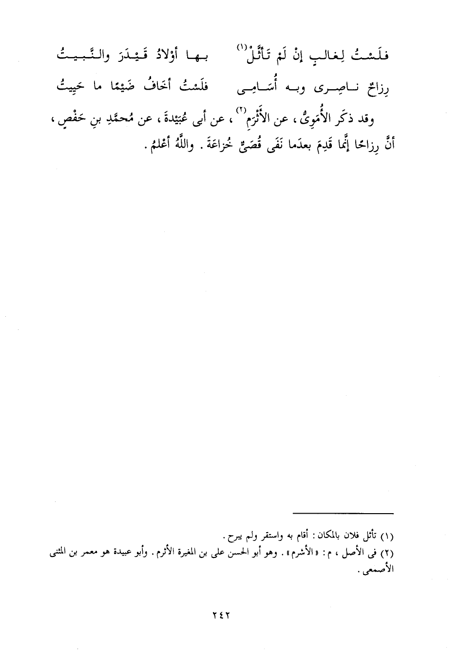 فَلَسْتُ لِغَالِبٍ إِنْ لَمْ تَأَثَّلْ ... بِهَا أَوْلَادُ قَيْدَرَ وَالنَّبِيتُ