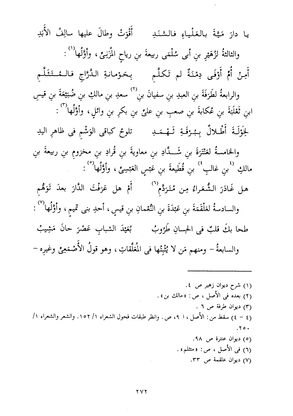 وَالسَّابِعَةُ - وَمِنْهُمْ مَنْ لَا يُثْبِتُهَا فِي الْمُعَلَّقَاتِ وَهُوَ قَوْلُ الْأَصْمَعِيِّ وَغَيْرِهِ -