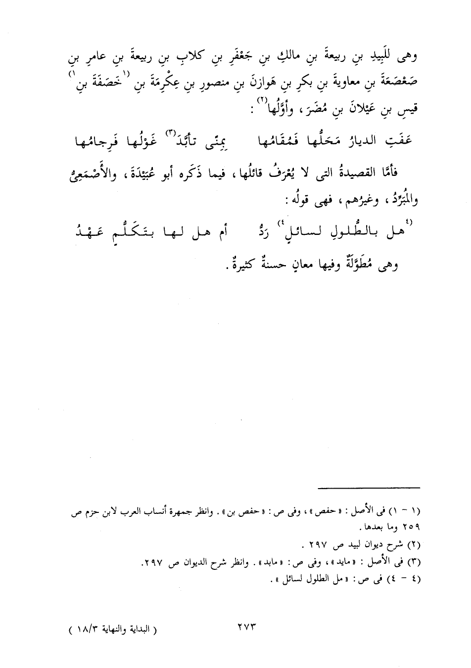 وَهِيَ لِلَبِيدِ بْنِ رَبِيعَةَ بْنِ مَالِكِ بْنِ جَعْفَرِ بْنِ كِلَابِ بْنِ رَبِيعَةَ بْنِ عَامِرِ بْنِ صَعْصَعَةَ بْنِ مُعَاوِيَةَ بْنِ بَكْرِ بْنِ هَوَازِنَ بْنِ مَنْصُورِ بْنِ عِكْرِمَةَ بْنِ خَصَفَةَ بْنِ قَيْسِ بْنِ عَيْلَانَ بْنِ مُضَرَ، وَأَوَّلُهَا