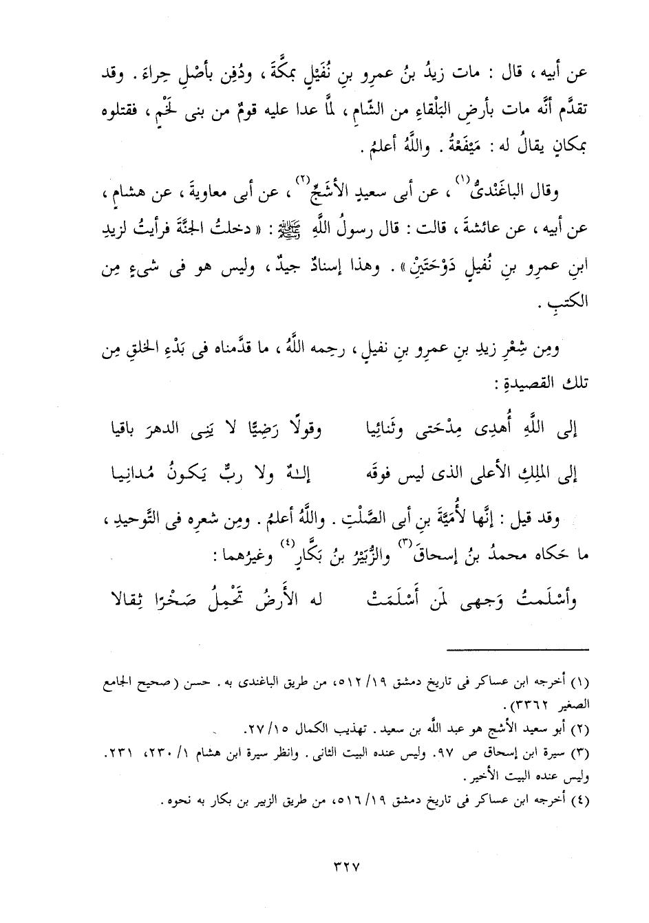وَمِنْ شِعْرِ زَيْدِ بْنِ عَمْرِو بْنِ نُفَيْلٍ رَحِمَهُ اللَّهُ مَا قَدَّمْنَاهُ فِي بَدْءِ الْخَلْقِ مِنْ تِلْكَ الْقَصِيدَةِ