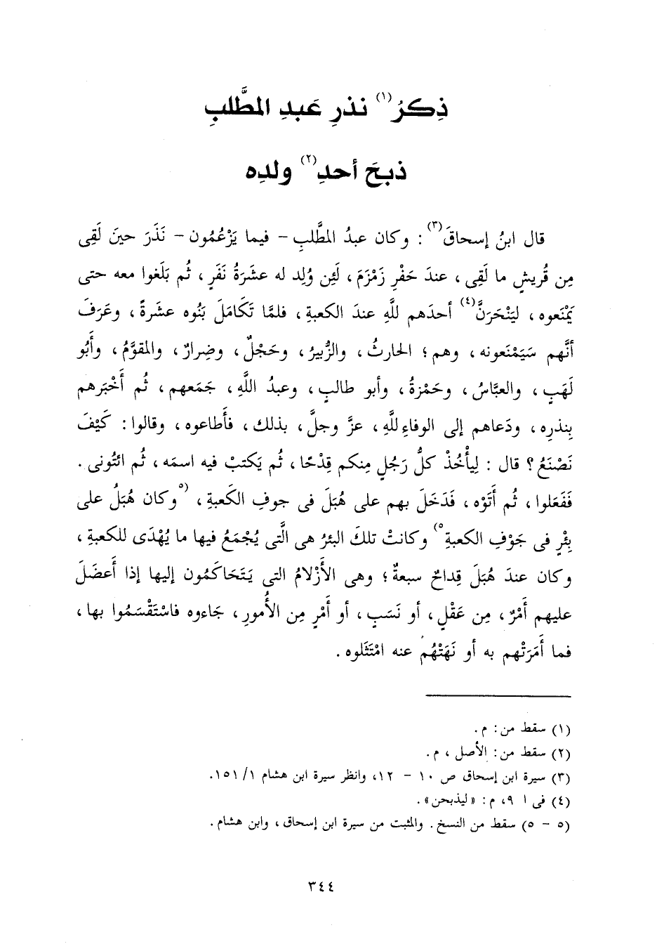ذِكْرُ نَذْرِ عَبْدِ الْمُطَّلِبِ