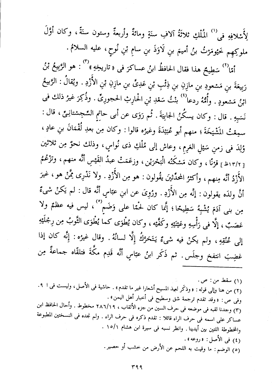 لِأَسْلَافِهِ فِي الْمُلْكِ ثَلَاثَةُ آلَافِ سَنَةٍ وَمِائَةٌ وَأَرْبَعَةٌ وَسِتُّونَ سَنَةً وَكَانَ أَوَّلَ مُلُوكِهِمْ خَيُومَرْتُ بْنُ أَمِيمَ بْنِ لَاوَذَ بْنِ سَامِ بْنِ نُوحٍ عَلَيْهِ السَّلَامُ.