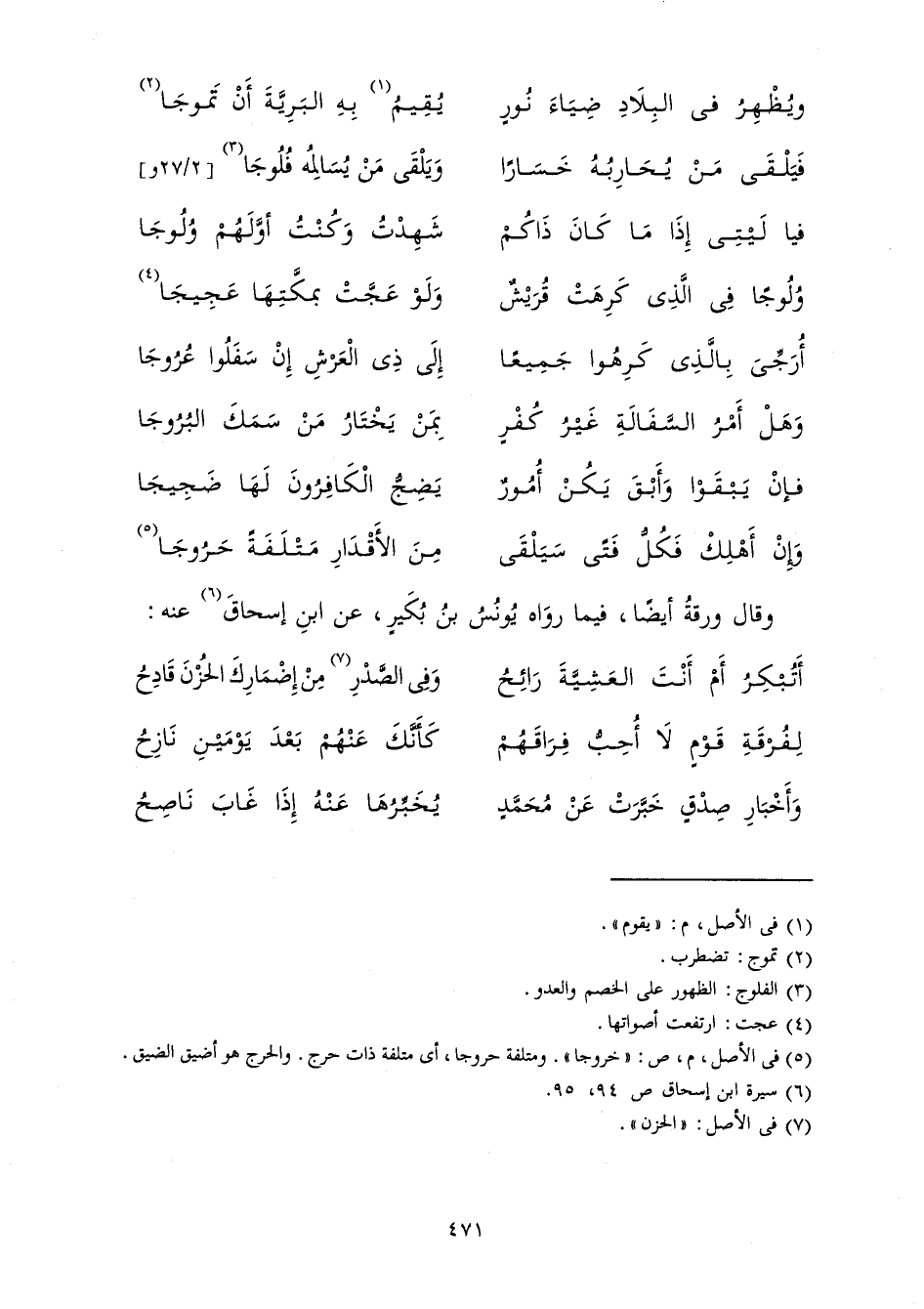 وَقَالَ وَرَقَةُ أَيْضًا فِيمَا رَوَاهُ يُونُسُ بْنُ بُكَيْرٍ عَنِ ابْنِ إِسْحَاقَ عَنْهُ: