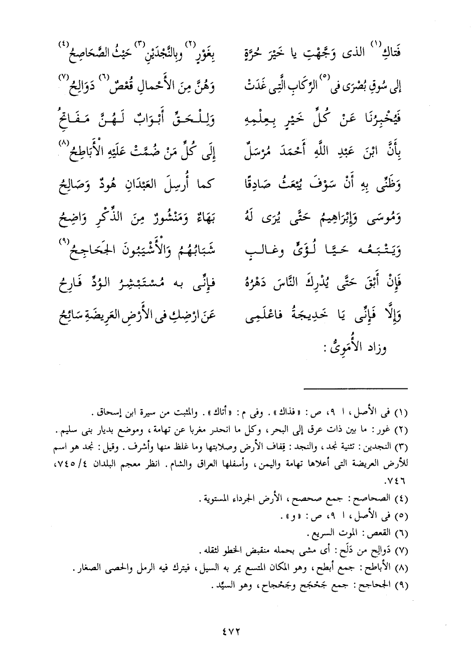 بِأَنَّ ابْنَ عَبْدِ اللَّهِ أَحْمَدَ مُرْسَلٌ ... إِلَى كُلِّ مَنْ ضَمَّتْ عَلَيْهِ الْأَبَاطِحُ