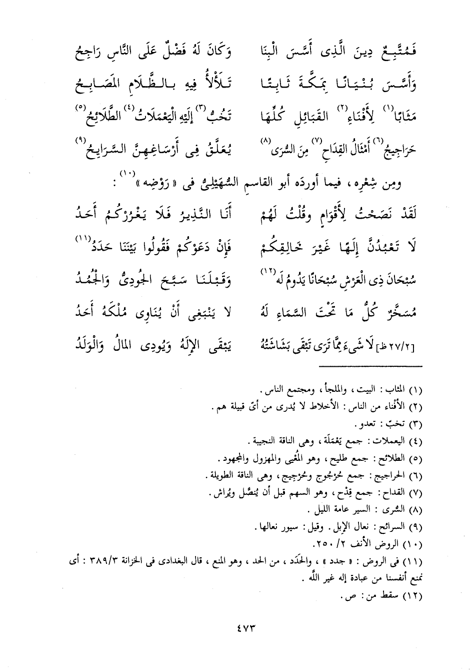 وَمِنْ شَعْرِهِ فِيمَا أَوْرَدَهُ أَبُو الْقَاسِمِ السُّهَيْلِيُّ فِي رَوْضِهِ