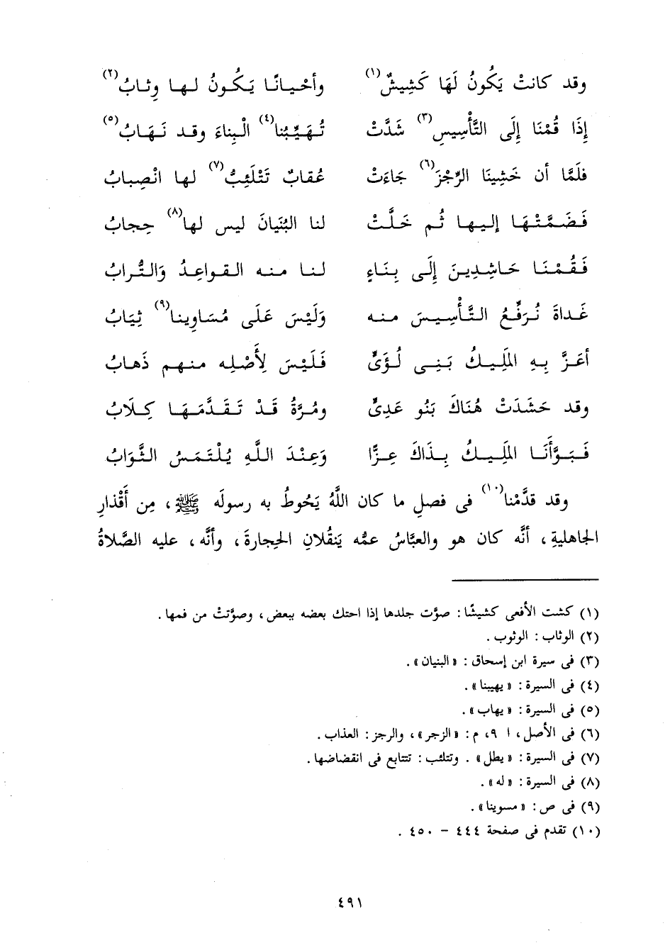 لَنَا الْبُنْيَانَ لَيْسَ لَهَا حِجَابُ ... فَقُمْنَا حَاشِدِينَ إِلَى بِنَاءٍ