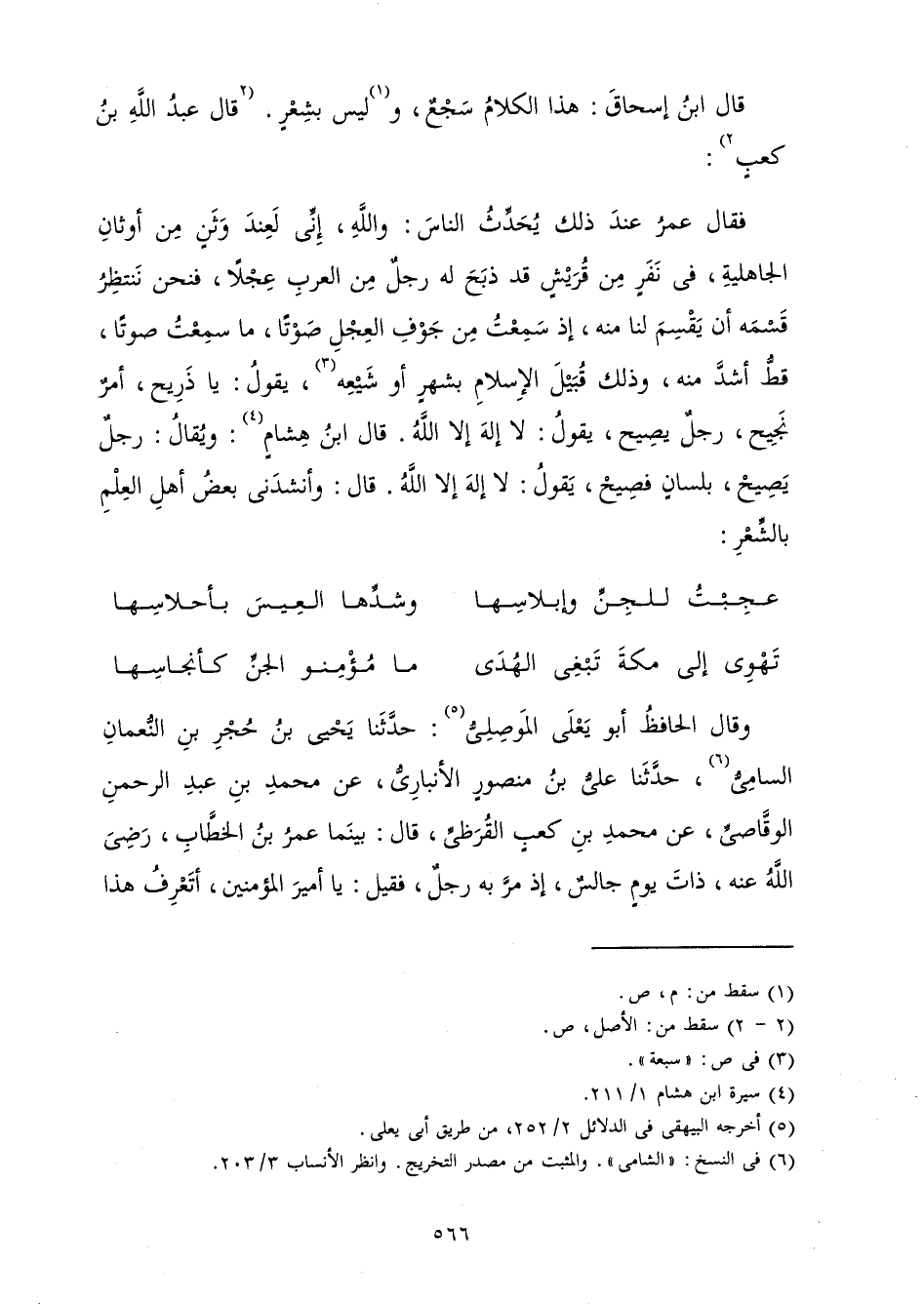 قَالَ ابْنُ إِسْحَاقَ هَذَا الْكَلَامُ سَجْعٌ لَيْسَ بِشِعْرٍ. قَالَ عَبْدُ اللَّهِ بْنُ كَعْبٍ: