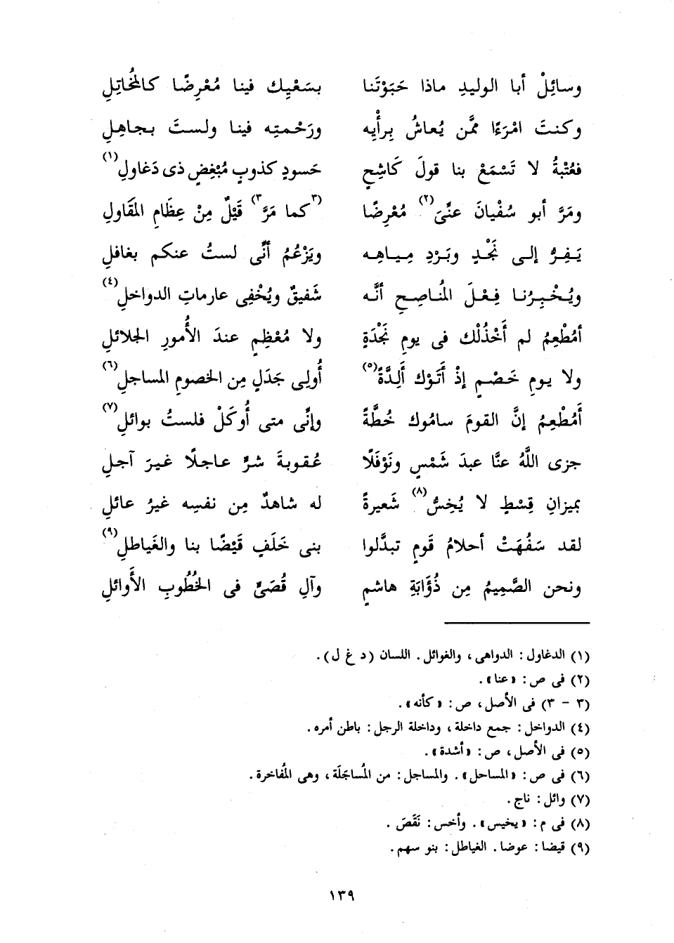وَسَائِلْ أَبَا الْوَلِيدِ مَاذَا حَبَوْتَنَا ... بِسَعْيِكَ فِينَا مُعْرِضًا كَالْمُخَاتِلِ