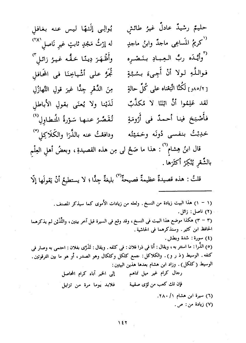 قَالَ ابْنُ هِشَامٍ: هَذَا مَا صَحَّ لِي مِنْ هَذِهِ الْقَصِيدَةِ، وَبَعْضُ أَهْلِ الْعِلْمِ بِالشِّعْرِ يُنْكِرُ أَكْثَرَهَا.