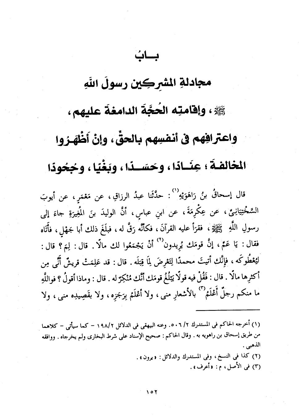 [بَابُ مُجَادَلَةِ الْمُشْرِكِينَ رَسُولَ اللَّهِ - صَلَّى اللَّهُ عَلَيْهِ وَسَلَّمَ - وَإِقَامَتِهِ الْحُجَّةَ الدَّامِغَةَ عَلَيْهِمْ]