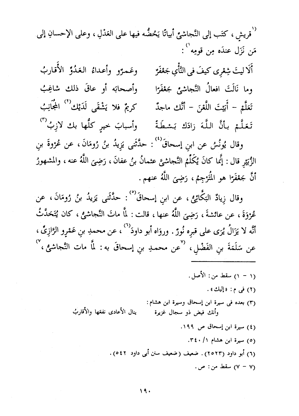 قُرَيْشٍ كَتَبَ إِلَى النَّجَاشِيِّ أَبْيَاتًا يَحُضُّهُ فِيهَا عَلَى الْعَدْلِ، وَعَلَى الْإِحْسَانِ إِلَى مَنْ نَزَلَ عِنْدَهُ مَنْ قَوْمِهِ: