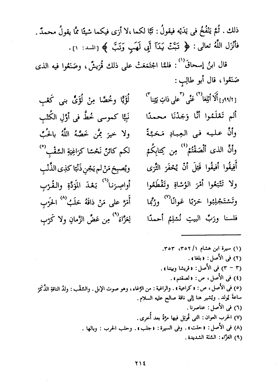 أَلَمْ تَعْلَمُوا أَنَّا وَجَدْنَا مُحَمَّدًا ... نَبِيًّا كَمُوسَى خُطَّ فِي أَوَّلِ الْكُتْبِ