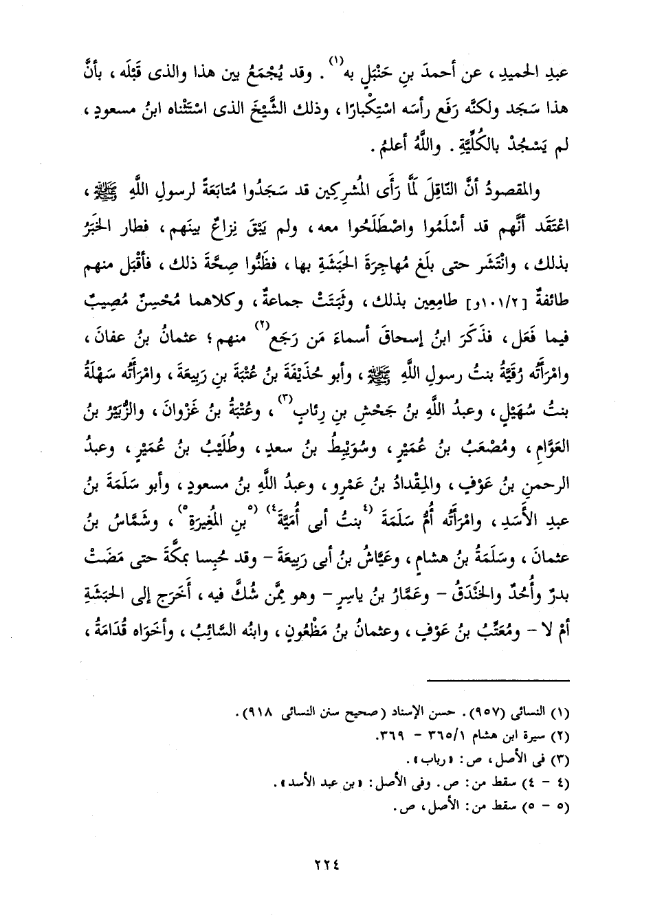 وَالْمَقْصُودُ أَنَّ النَّاقِلَ لَمَّا رَأَى الْمُشْرِكِينَ قَدْ سَجَدُوا مُتَابَعَةً لِرَسُولِ اللَّهِ - صَلَّى اللَّهُ عَلَيْهِ وَسَلَّمَ - اعْتَقَدَ أَنَّهُمْ قَدْ أَسْلَمُوا، وَاصْطَلَحُوا مَعَهُ، وَلَمْ يَبْقَ نِزَاعٌ بَيْنَهُمْ، فَطَارَ الْخَبَرُ بِذَلِكَ وَانْتَشَرَ حَتَّى بَلَغَ مُهَاجِرَةَ الْحَبَشَةِ بِهَا، فَظَنُّوا صِحَّةَ ذَلِكَ، فَأَقْبَلَ مِنْهُمْ طَائِفَةٌ طَامِعِينَ بِذَلِكَ، وَثَبَتَتْ جَمَاعَةٌ، وَكِلَاهُمَا مُحْسِنٌ مُصِيبٌ فِيمَا فَعَلَ، فَذَكَرَ ابْنُ إِسْحَاقَ أَسْمَاءَ مَنْ رَجَعَ مِنْهُمْ ; عُثْمَانُ بْنُ عَفَّانَ وَامْرَأَتُهُ رُقَيَّةُ بِنْتُ رَسُولِ اللَّهِ - صَلَّى اللَّهُ عَلَيْهِ وَسَلَّمَ - وَأَبُو حُذَيْفَةَ بْنُ عُتْبَةَ بْنِ رَبِيعَةَ وَامْرَأَتُهُ سَهْلَةُ بِنْتُ سُهَيْلٍ، وَعَبْدُ اللَّهِ بْنُ جَحْشِ بْنِ رِئَابٍ وَعُتْبَةُ بْنُ غَزْوَانَ وَالزُّبَيْرُ بْنُ الْعَوَّامِ وَمُصْعَبُ بْنُ عُمَيْرٍ وَسُوَيْبِطُ بْنُ سَعْدٍ وَطُلَيْبُ بْنُ عُمَيْرٍ وَعَبْدُ الرَّحْمَنِ بْنُ عَوْفٍ وَالْمِقْدَادُ بْنُ عَمْرٍو وَعَبْدُ اللَّهِ بْنُ مَسْعُودٍ وَأَبُو سَلَمَةَ بْنُ عَبْدِ الْأَسَدِ وَامْرَأَتُهُ أُمُّ سَلَمَةَ بِنْتُ أَبِي أُمَيَّةَ بْنِ الْمُغِيرَةِ، وَشَمَّاسُ بْنُ عُثْمَانَ وَسَلَمَةُ بْنُ هِشَامٍ وَعَيَّاشُ بْنُ أَبِي رَبِيعَةَ وَقَدْ حُبِسَا بِمَكَّةَ حَتَّى مَضَتْ بَدْرٌ وَأُحُدٌ وَالْخَنْدَقُ وَعَمَّارُ بْنُ يَاسِرٍ وَهُوَ مِمَّنْ شُكَّ فِيهِ، أَخَرَجَ إِلَى الْحَبَشَةِ أَمْ لَا وَمُعَتِّبُ بْنُ عَوْفٍ وَعُثْمَانُ بْنُ مَظْعُونٍ وَابْنُهُ السَّائِبُ وَأَخَوَاهُ قُدَامَةُ