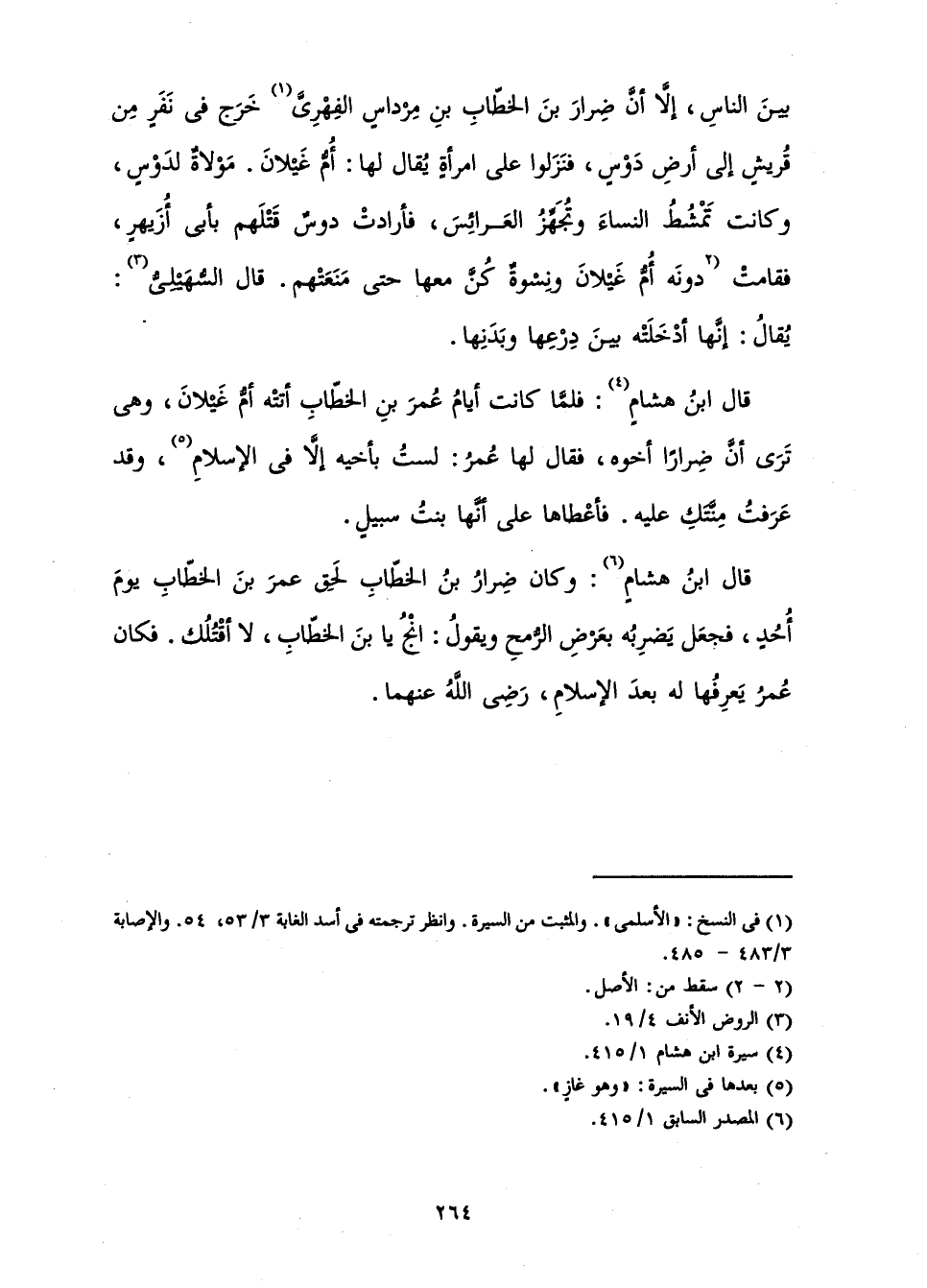 قَالَ ابْنُ هِشَامٍ: فَلَمَّا كَانَتْ أَيَّامُ عُمَرَ بْنِ الْخَطَّابِ أَتَتْهُ أُمُّ غَيْلَانَ، وَهِيَ تَرَى أَنَّ ضِرَارًا أَخُوهُ، فَقَالَ لَهَا عُمَرُ: لَسْتُ بِأَخِيهِ إِلَّا فِي الْإِسْلَامِ، وَقَدْ عَرَفْتُ مِنَّتَكِ عَلَيْهِ. فَأَعْطَاهَا عَلَى أَنَّهَا بَنْتُ سَبِيلٍ.