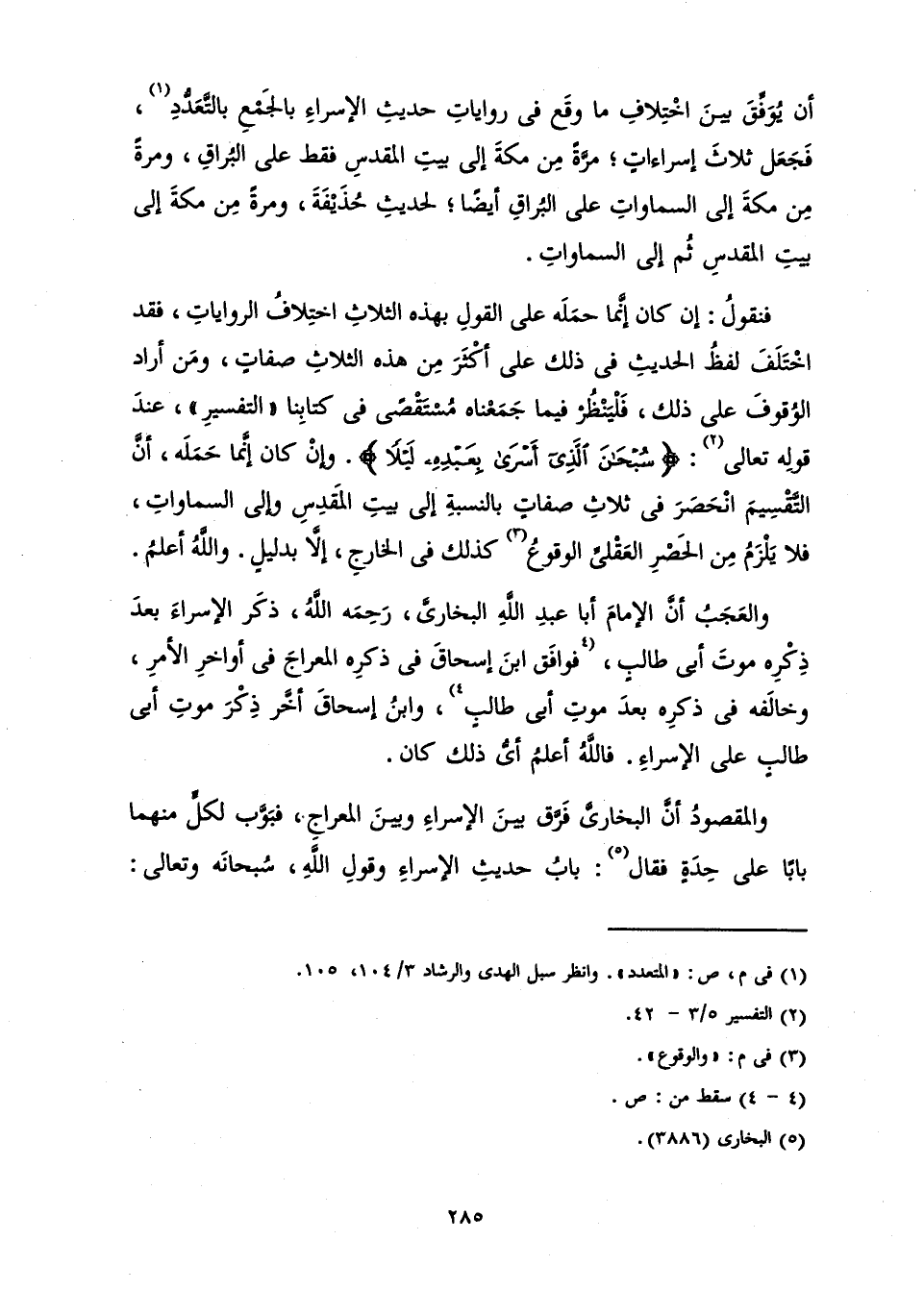 وَالْمَقْصُودُ أَنَّ الْبُخَارِيَّ فَرَّقَ بَيْنَ الْإِسْرَاءِ وَبَيْنَ الْمِعْرَاجِ، فَبَوَّبَ لِكُلٍّ مِنْهُمَا بَابًا عَلَى حِدَةٍ، فَقَالَ: بَابُ حَدِيثِ الْإِسْرَاءِ وَقَوْلِ اللَّهِ سُبْحَانَهُ وَتَعَالَى: