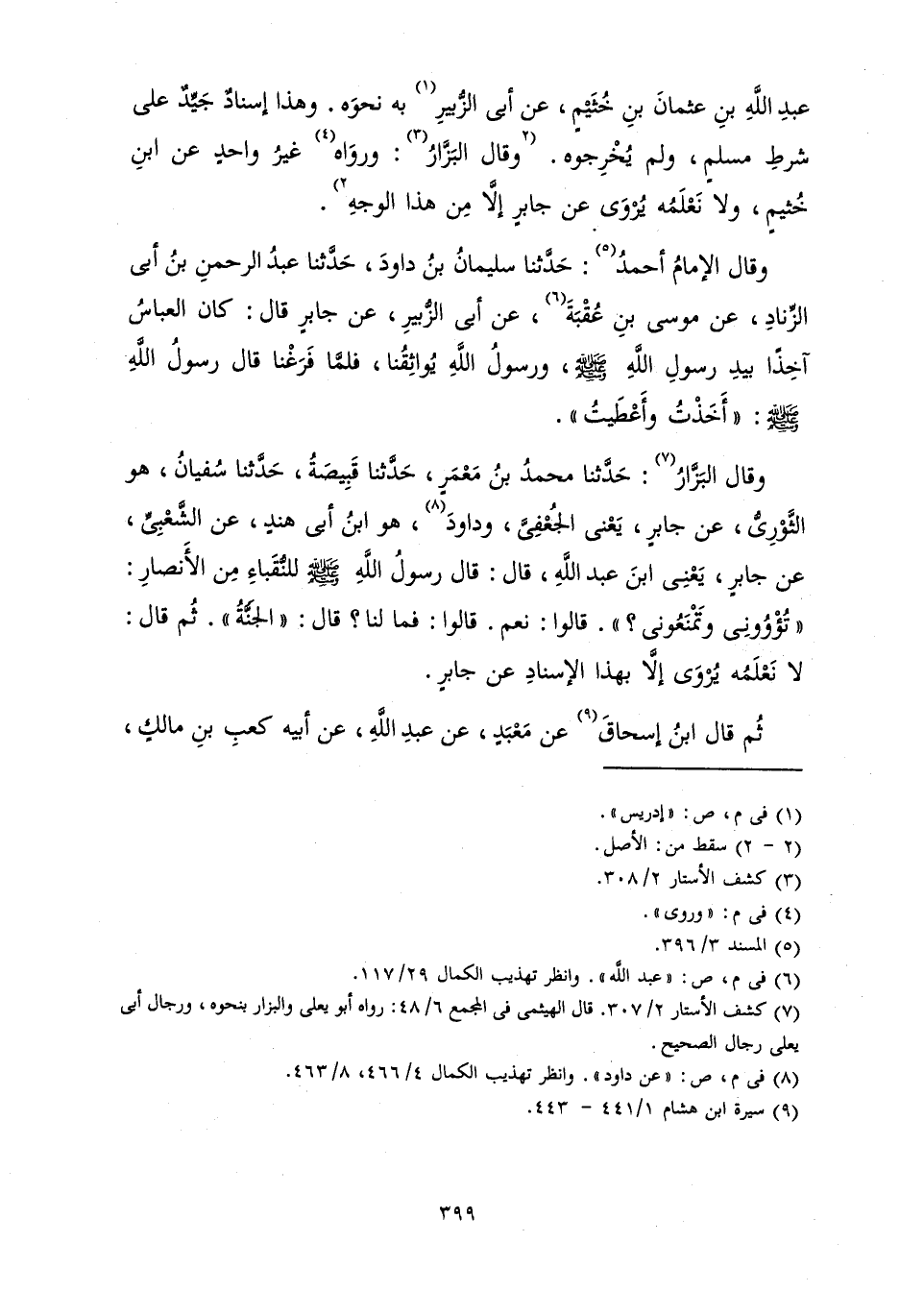 عَبْدِ اللَّهِ بْنِ عُثْمَانَ بْنِ خُثَيْمٍ، عَنْ أَبِي الزُّبَيْرِ بِهِ نَحْوَهُ. وَهَذَا إِسْنَادٌ جَيِّدٌ عَلَى شَرْطِ مُسْلِمٍ، وَلَمْ يُخْرِجُوهُ. وَقَالَ الْبَزَّارُ: وَرَوَاهُ غَيْرُ وَاحِدٍ عَنِ ابْنِ خُثَيْمٍ، وَلَا نَعْلَمُهُ يُرْوَى عَنْ جَابِرٍ إِلَّا مِنْ هَذَا الْوَجْهِ.