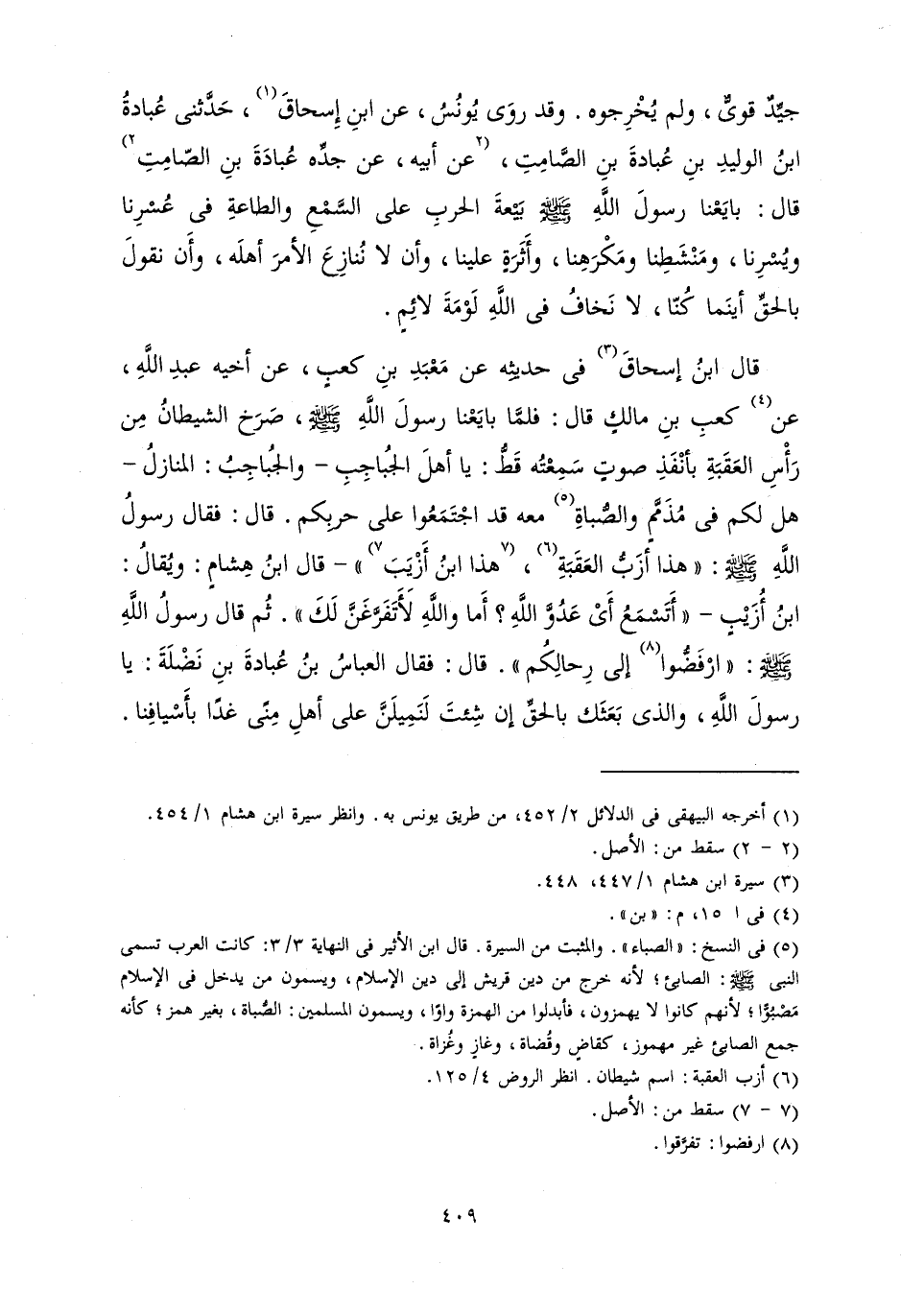 جِيدٌ قَوِيٌّ، وَلَمْ يُخْرِجُوهُ. وَقَدْ رَوَى يُونُسُ، عَنِ ابْنِ إِسْحَاقَ، حَدَّثَنِي عُبَادَةُ بْنُ الْوَلِيدِ بْنِ عُبَادَةَ بْنِ الصَّامِتِ، عَنْ أَبِيهِ، عَنْ جَدِّهِ عُبَادَةَ بْنِ الصَّامِتِ، قَالَ: «بَايَعْنَا رَسُولَ اللَّهِ صَلَّى اللَّهُ عَلَيْهِ وَسَلَّمَ بَيْعَةَ الْحَرْبِ عَلَى السَّمْعِ وَالطَّاعَةِ فِي عُسْرِنَا وَيُسْرِنَا، وَمُنْشَطِنَا وَمَكْرَهِنَا، وَأَثَرَةٍ عَلَيْنَا، وَأَنْ لَا نُنَازِعَ الْأَمْرَ أَهْلَهُ، وَأَنْ نَقُولَ بِالْحَقِّ أَيْنَمَا كُنَّا لَا نَخَافُ فِي اللَّهِ لَوْمَةَ لَائِمٍ.»