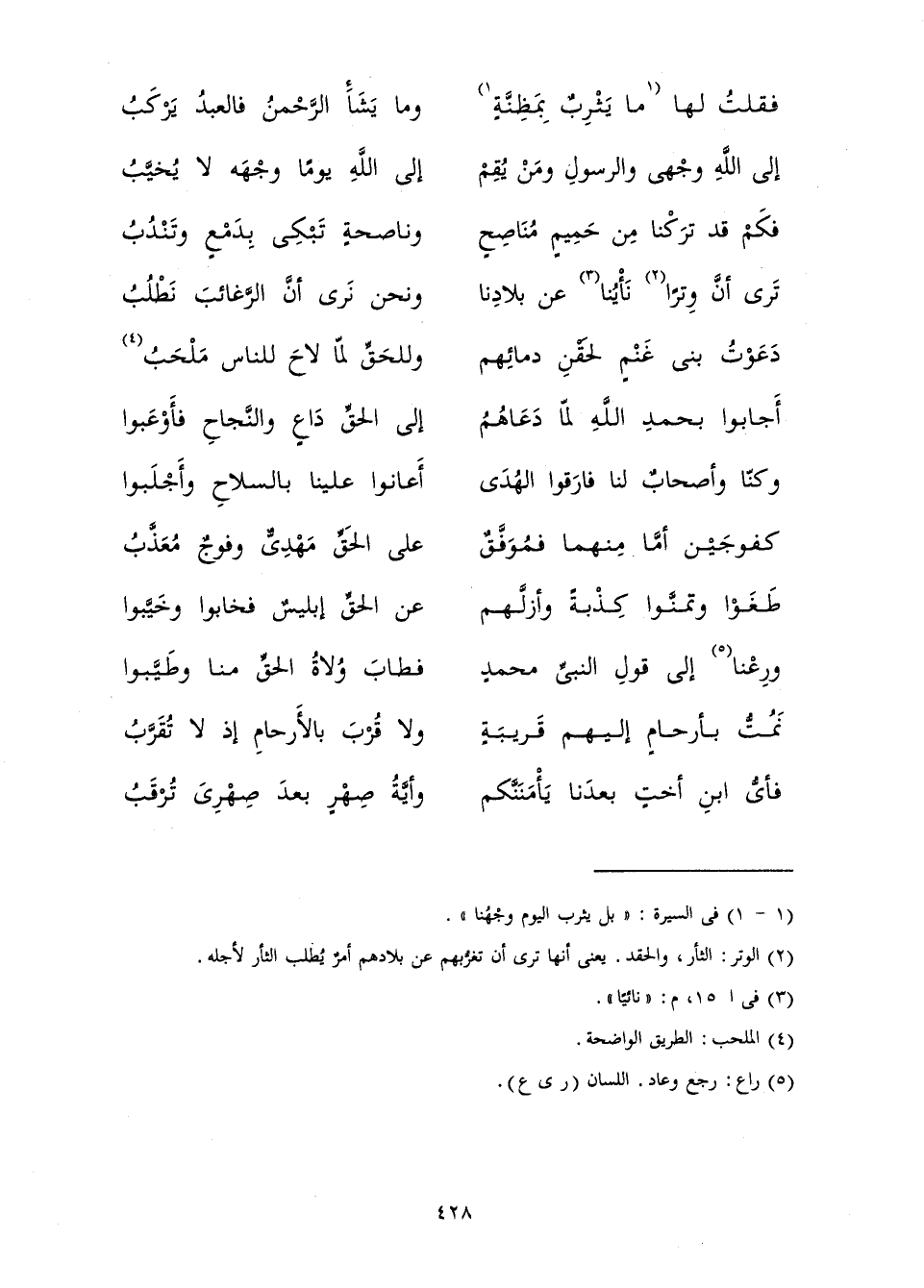 عَنِ الْحَقِّ إِبْلِيسٌ فَخَابُوا وَخَيَّبُوا ... وَرِعْنَا إِلَى قَوْلِ النَّبِيِّ مُحَمَّدٍ