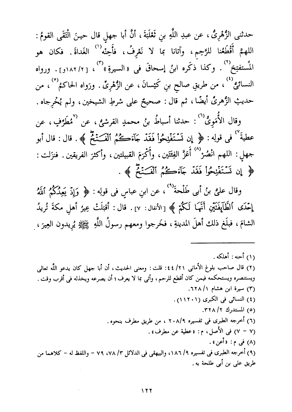 حَدَّثَنِي الزُّهْرِيُّ، عَنْ عَبْدِ اللَّهِ بْنِ ثَعْلَبَةَ، أَنَّ أَبَا جَهْلٍ قَالَ حِينَ الْتَقَى الْقَوْمُ: اللَّهُمَّ أَقْطَعُنَا لِلرَّحِمِ، وَآتَانَا بِمَا لَا نَعْرِفُ، فَأَحِنْهُ الْغَدَاةَ. فَكَانَ هُوَ الْمُسْتَفْتِحَ. وَكَذَا ذَكَرَهُ ابْنُ إِسْحَاقَ فِي السِّيرَةِ، وَرَوَاهُ النَّسَائِيُّ، مِنْ طَرِيقِ صَالِحِ بْنِ كَيْسَانَ، عَنِ الزُّهْرِيِّ. وَرَوَاهُ الْحَاكِمُ، مِنْ حَدِيثِ الزُّهْرِيِّ أَيْضًا، ثُمَّ قَالَ: صَحِيحٌ عَلَى شَرْطِ الشَّيْخَيْنِ، وَلَمْ يُخْرِجَاهُ.