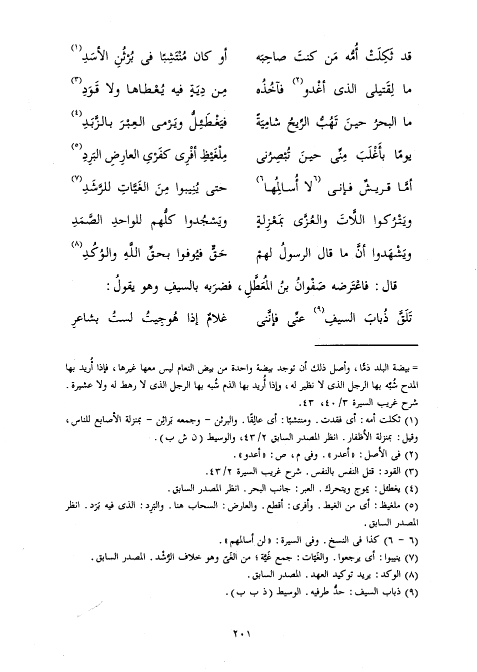 قَالَ: فَاعْتَرَضَهُ صَفْوَانُ بْنُ الْمُعَطَّلِ، فَضَرَبَهُ بِالسَّيْفِ وَهُوَ يَقُولُ: