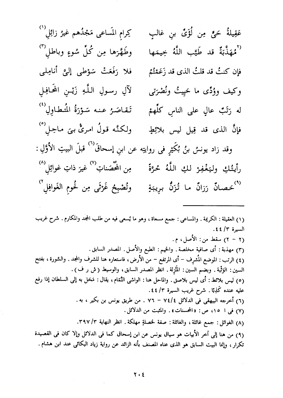 عَقِيلَةُ حَيٍّ مِنْ لُؤَيِّ بْنِ غَالِبٍ ... كِرَامِ الْمَسَاعِي مَجْدُهُمْ غَيْرُ زَائِلِ