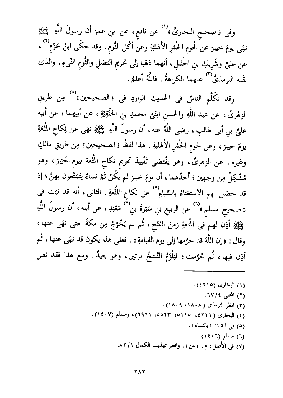 وَقَدْ تَكَلَّمَ النَّاسُ فِي الْحَدِيثِ الْوَارِدِ فِي " الصَّحِيحَيْنِ " مِنْ طَرِيقِ الزُّهْرِيِّ، عَنْ عَبْدِ اللَّهِ وَالْحَسَنِ ابْنَيْ مُحَمَّدِ بْنِ الْحَنَفِيَّةِ، عَنْ أَبِيهِمَا، عَنْ أَبِيهِ عَلِيِّ بْنِ أَبِي طَالِبٍ، رَضِيَ اللَّهُ عَنْهُ «أَنَّ رَسُولَ اللَّهِ صَلَّى اللَّهُ عَلَيْهِ وَسَلَّمَ نَهَى عَنْ نِكَاحِ الْمُتْعَةِ يَوْمَ خَيْبَرَ، وَعَنْ لُحُومِ الْحُمُرِ الْأَهْلِيَّةِ» . هَذَا لَفْظُ " الصَّحِيحَيْنِ " مِنْ طَرِيقِ مَالِكٍ وَغَيْرِهِ، عَنِ الزُّهْرِيِّ وَهُوَ يَقْتَضِي تَقْيِيدَ تَحْرِيمِ نِكَاحِ الْمُتْعَةِ بِيَوْمِ خَيْبَرَ وَهُوَ مُشْكِلٌ مِنْ وَجْهَيْنِ؛ أَحَدُهُمَا، أَنَّ يَوْمَ خَيْبَرَ لَمْ يَكُنْ ثَمَّ نِسَاءٌ يَتَمَتَّعُونَ بِهِنَّ؛ إِذْ قَدْ حَصَلَ لَهُمْ الِاسْتِغْنَاءُ بِالسِّبَاءِ عَنْ نِكَاحِ الْمُتْعَةِ. الثَّانِي، أَنَّهُ قَدْ ثَبَتَ فِي " صَحِيحِ مُسْلِمٍ " عَنِ الرَّبِيعِ بْنِ سَبْرَةَ بْنِ مَعْبَدٍ، عَنْ أَبِيهِ: «أَنَّ رَسُولَ اللَّهِ صَلَّى اللَّهُ عَلَيْهِ وَسَلَّمَ أَذِنَ لَهُمْ فِي الْمُتْعَةِ زَمَنَ الْفَتْحِ، ثُمَّ لَمْ يَخْرُجْ مِنْ مَكَّةَ حَتَّى نَهَى عَنْهَا، وَقَالَ: " إِنَّ اللَّهَ قَدْ حَرَّمَهَا إِلَى يَوْمِ الْقِيَامَةِ» فَعَلَى هَذَا يَكُونُ قَدْ نَهَى عَنْهَا ثُمَّ أَذِنَ فِيهَا، ثُمَّ حُرِّمَتْ، فَيَلْزَمُ النَّسْخُ مَرَّتَيْنِ، وَهُوَ بَعِيدٌ. وَمَعَ هَذَا فَقَدَ نَصَّ