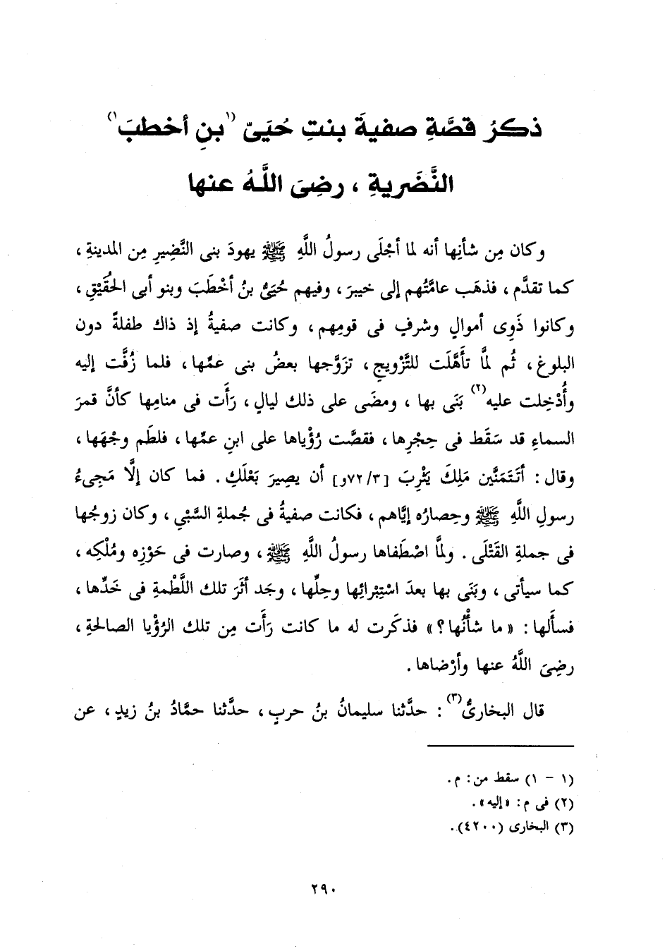 ذِكْرُ قِصَّةِ صَفِيَّةَ بِنْتِ حُيَيِّ بْنِ أَخْطَبَ النَّضَرِيَّةِ، رَضِيَ اللَّهُ عَنْهَا