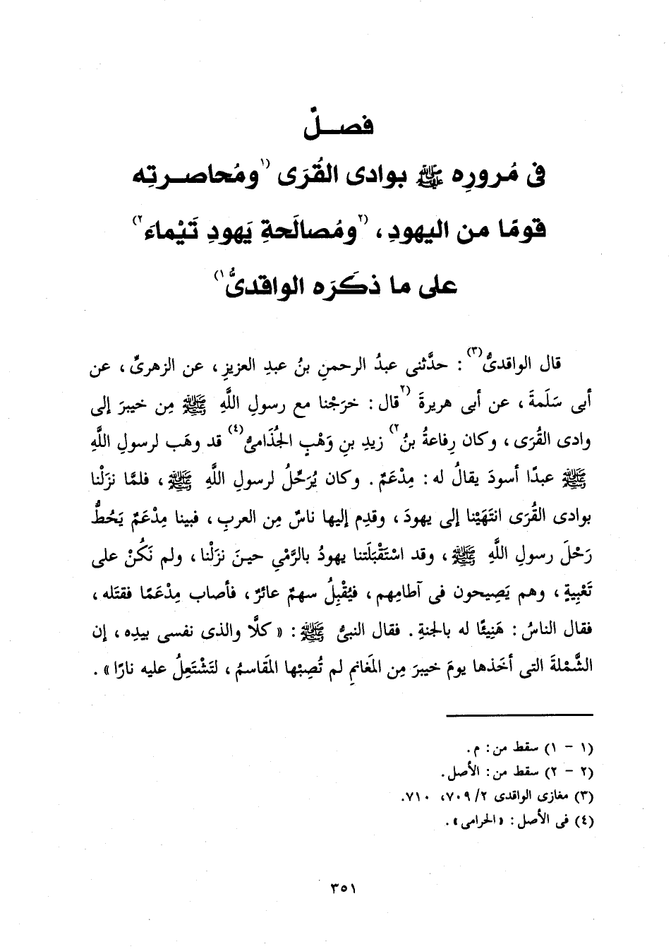 فَصْلٌ فِي مُرُورِهِ صَلَّى اللَّهُ عَلَيْهِ وَسَلَّمَ بِوَادِي الْقُرَى وَمُحَاصَرَتِهِ قَوْمًا مِنَ الْيَهُودِ، وَمُصَالَحَةِ يَهُودِ تَيْمَاءَ عَلَى مَا ذَكَرَهُ الْوَاقِدِيُّ
