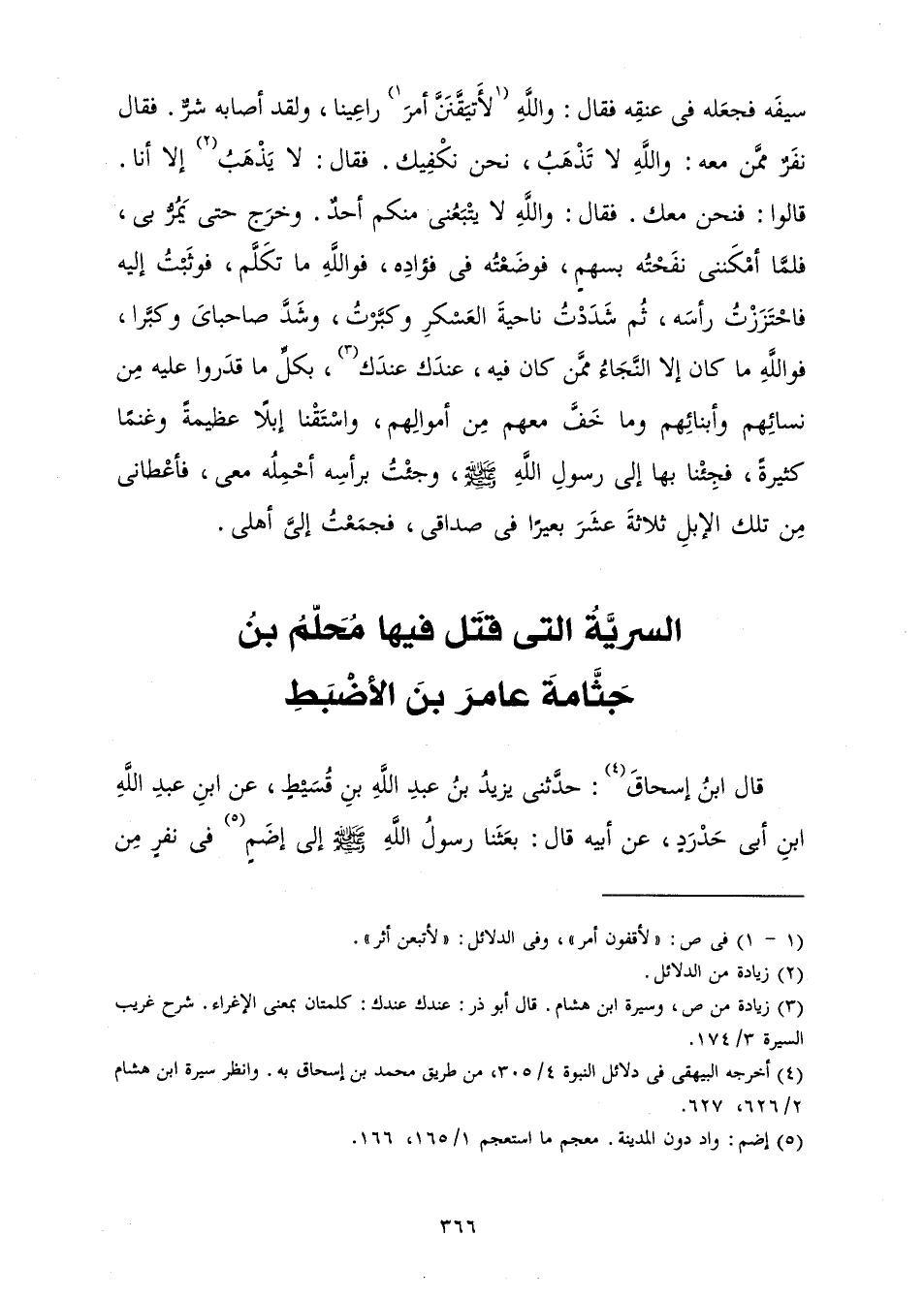 [السَرِيَّةُ الَّتِي قَتَلَ فِيهَا مُحَلِّمُ بْنُ جَثَّامَةَ عَامِرَ بْنَ الْأَضْبَطِ]
