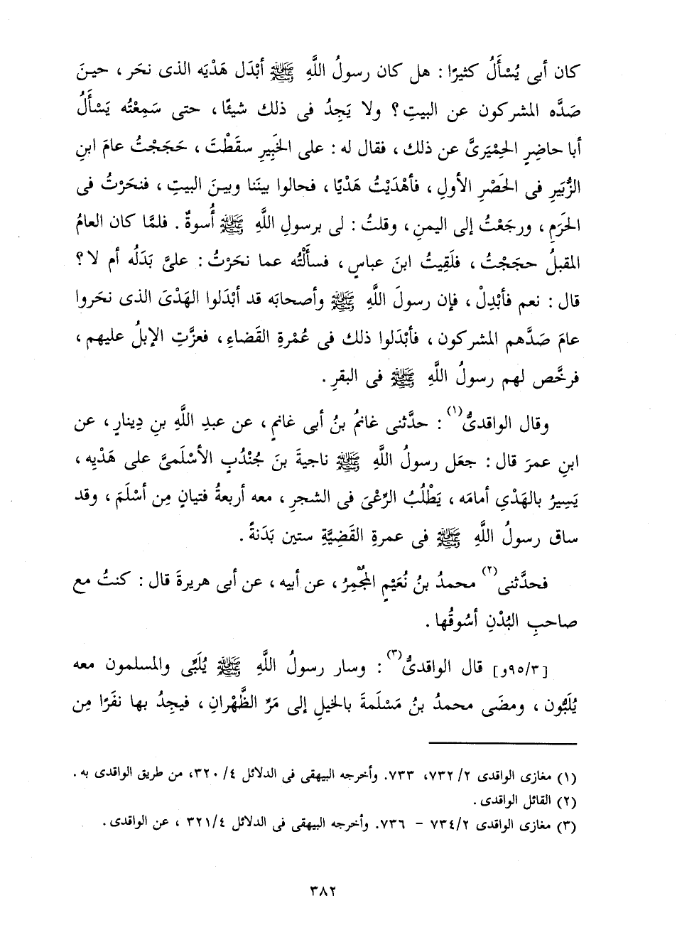 كَانَ أَبِي يَسْأَلُ كَثِيرًا: هَلْ كَانَ رَسُولُ اللَّهِ صَلَّى اللَّهُ عَلَيْهِ وَسَلَّمَ أَبْدَلَ هَدْيَهُ الَّذِي نَحَرَ، حِينَ صَدَّهُ الْمُشْرِكُونَ عَنِ الْبَيْتِ؟ وَلَا يَجِدُ فِي ذَلِكَ شَيْئًا، حَتَّى سَمِعْتُهُ يَسْأَلُ أَبَا حَاضِرٍ الْحِمْيَرِيَّ عَنْ ذَلِكَ، فَقَالَ لَهُ: عَلَى الْخَبِيرِ سَقَطْتَ، حَجَجْتُ عَامَ ابْنِ الزُّبَيْرِ فِي الْحَصْرِ الْأَوَّلِ، فَأَهْدَيْتُ هَدْيًا، فَحَالُوا بَيْنَنَا وَبَيْنَ الْبَيْتِ، فَنَحَرْتُ فِي الْحَرَمِ، وَرَجَعْتُ إِلَى الْيَمَنِ، وَقُلْتُ: لِي بِرَسُولِ اللَّهِ صَلَّى اللَّهُ عَلَيْهِ وَسَلَّمَ أُسْوَةٌ. فَلَمَّا كَانَ الْعَامُ الْمُقْبِلُ حَجَجْتُ، فَلَقِيتُ ابْنَ عَبَّاسٍ، فَسَأَلْتُهُ عَمَّا نَحَرْتُ: عَلَيَّ بَدَلَهُ أَمْ لَا؟ قَالَ: نَعَمْ فَأَبْدِلْ، «فَإِنَّ رَسُولَ اللَّهِ صَلَّى اللَّهُ عَلَيْهِ وَسَلَّمَ وَأَصْحَابَهُ قَدْ أَبْدَلُوا الْهَدْيَ الَّذِي نَحَرُوا عَامَ صَدَّهُمُ الْمُشْرِكُونَ، فَأَبْدَلُوا ذَلِكَ فِي عُمْرَةِ الْقَضَاءِ فَعَزَّتِ الْإِبِلُ عَلَيْهِمْ، فَرَخَّصَ لَهُمْ رَسُولُ اللَّهِ صَلَّى اللَّهُ عَلَيْهِ وَسَلَّمَ فِي الْبَقَرِ» .