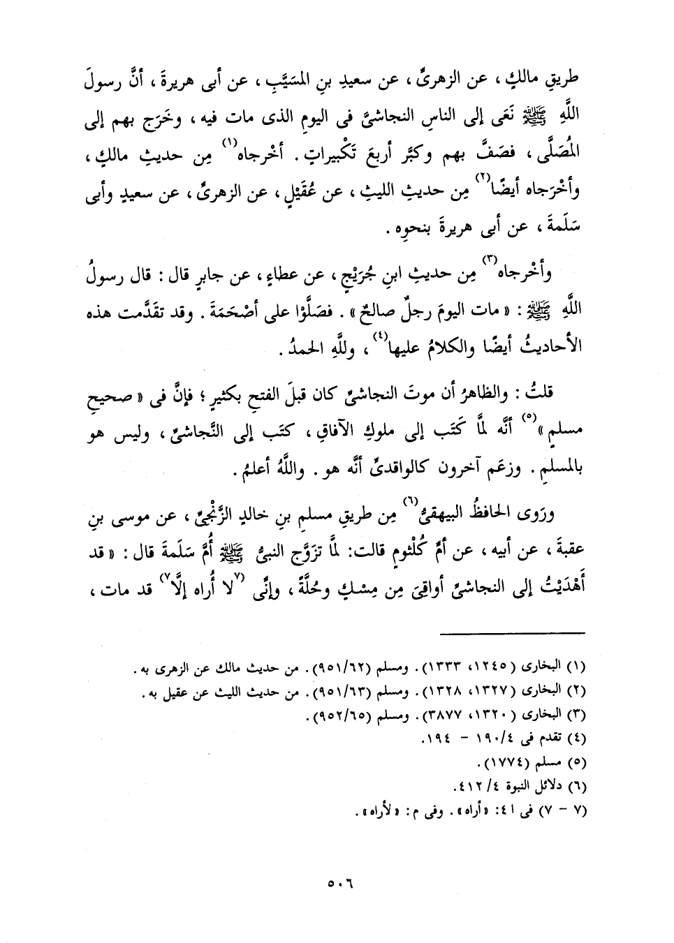 وَرَوَى الْحَافِظُ الْبَيْهَقِيُّ مِنْ طَرِيقِ مُسْلِمِ بْنِ خَالِدٍ الزِّنْجِيِّ، عَنْ مُوسَى بْنِ عُقْبَةَ عَنْ أَبِيهِ، عَنْ أُمِّ كُلْثُومٍ قَالَتْ: «لَمَّا تَزَوَّجَ النَّبِيُّ صَلَّى اللَّهُ عَلَيْهِ وَسَلَّمَ أُمَّ سَلَمَةَ قَالَ: " قَدْ أَهْدَيْتُ إِلَى النَّجَاشِيِّ أَوَاقِيَ مِنْ مِسْكٍ وَحُلَّةً، وَإِنِّي لَا أَرَاهُ إِلَّا قَدْ مَاتَ،
