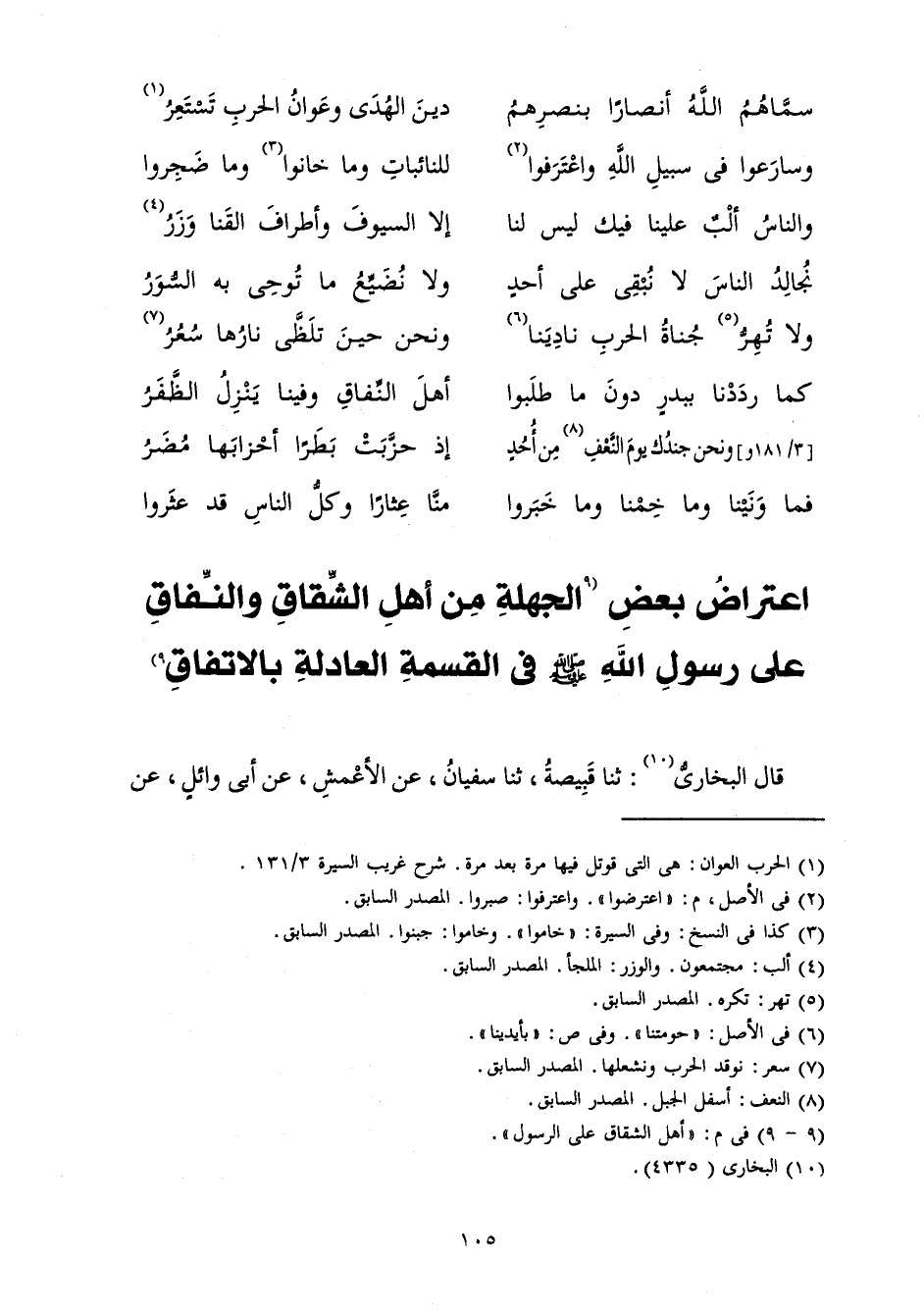أَهْلَ النِّفَاقِ وَفِينَا يَنْزِلُ الظَّفَرُ ... وَنَحْنُ جُنْدُكَ يَوْمَ النَّعْفِ مِنْ أُحُدٍ
