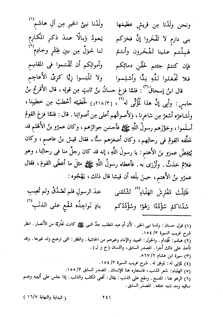 ظَلِلْتَ مُفْتَرِشَ الْهَلْبَاءِ تَشْتُمُنِي ... عِنْدَ الرَّسُولِ فَلَمْ تَصْدُقْ وَلَمْ تُصِبِ