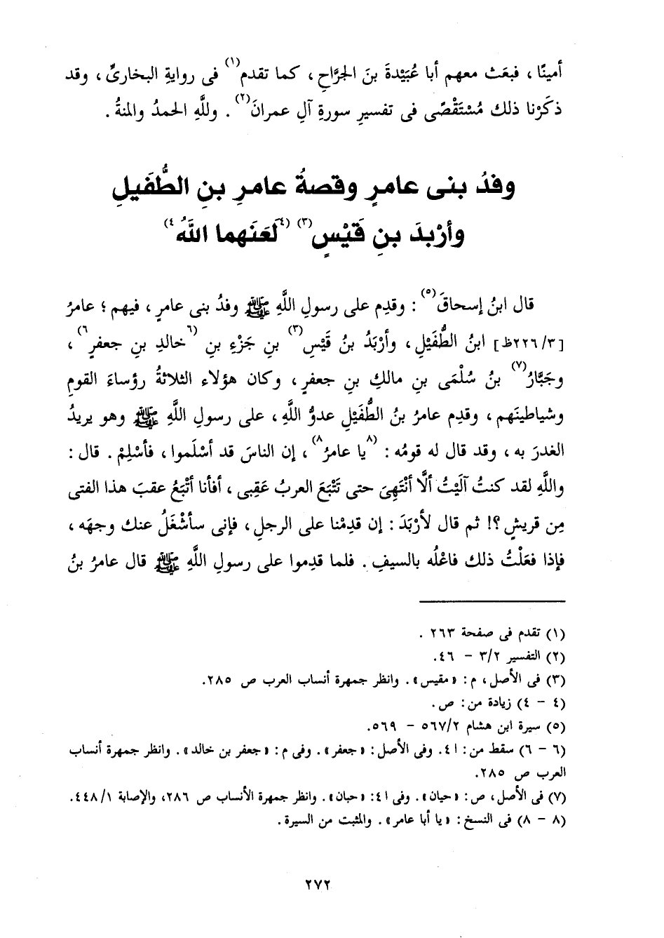 [وَفْدُ بَنِي عَامِرٍ وَقِصَّةُ عَامِرِ بْنِ الطُّفَيْلِ وَأَرْبَدَ بْنِ قَيْسٍ]