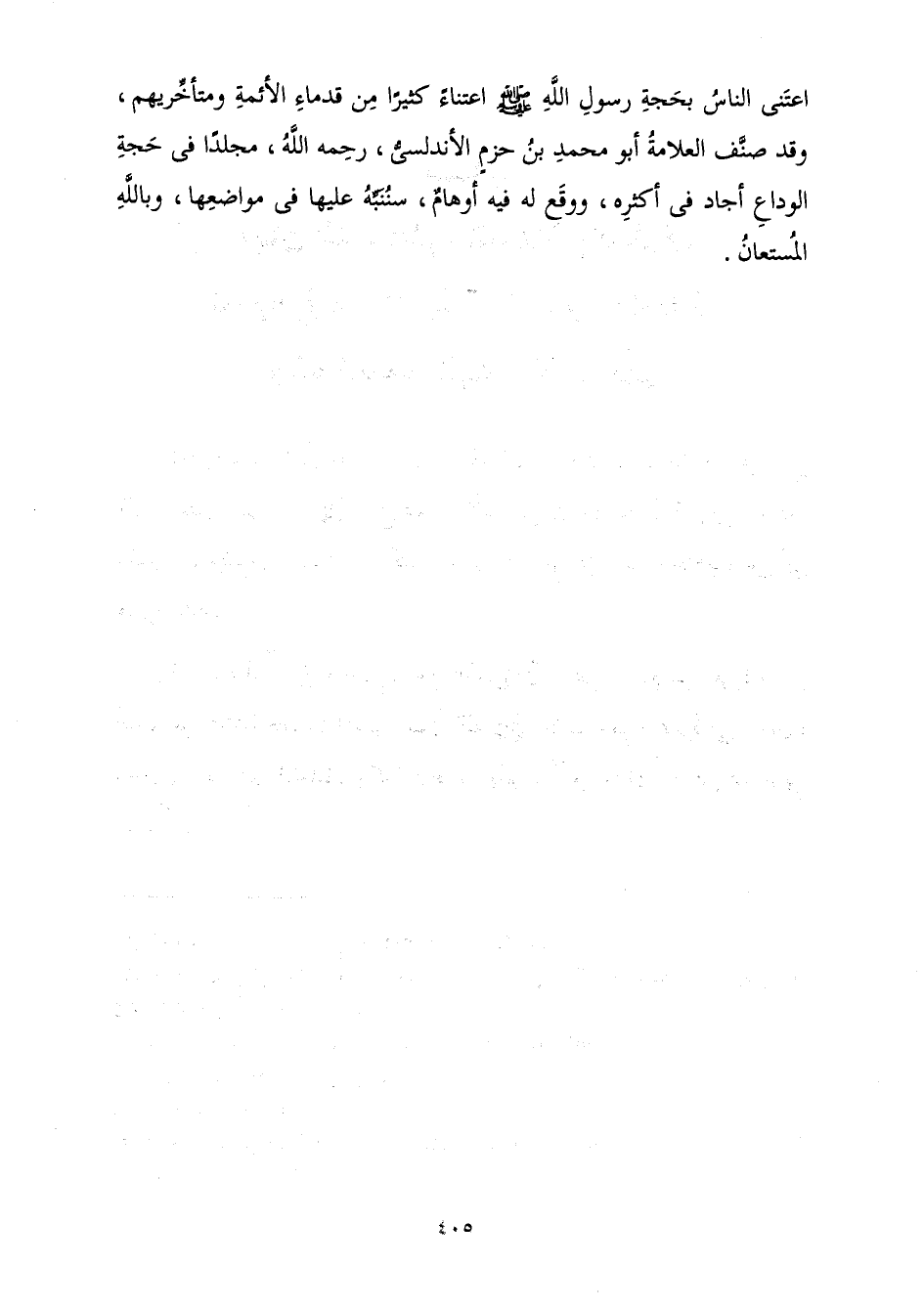 اعْتَنَى النَّاسُ بِحَجَّةِ رَسُولِ اللَّهِ صَلَّى اللَّهُ عَلَيْهِ وَسَلَّمَ اعْتِنَاءً كَثِيرًا مِنْ قُدَمَاءِ الْأَئِمَّةِ وَمُتَأَخِّرِيهِمْ، وَقَدْ صَنَّفَ الْعَلَّامَةُ أَبُو مُحَمَّدِ بْنُ حَزْمٍ الْأَنْدَلُسِيُّ، رَحِمَهُ اللَّهُ، مُجَلَّدًا فِي حَجَّةِ الْوَدَاعِ أَجَادَ فِي أَكْثَرِهِ، وَوَقَعَ لَهُ فِيهِ أَوْهَامٌ، سَنُنَبِّهُ عَلَيْهَا فِي مَوَاضِعِهَا، وَبِاللَّهِ الْمُسْتَعَانُ.