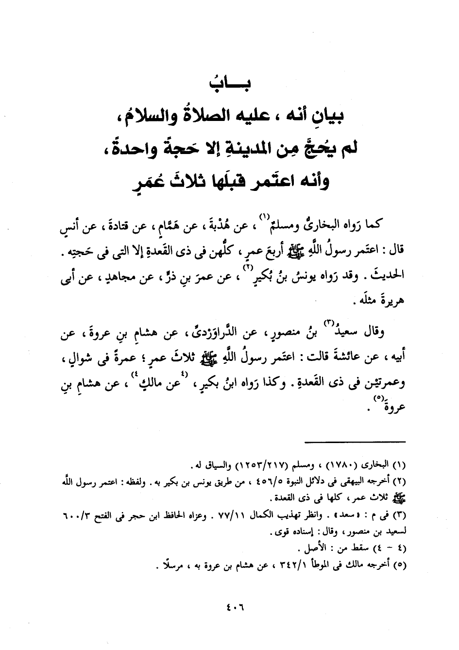 بَابُ بَيَانِ أَنَّهُ، عَلَيْهِ الصَّلَاةُ وَالسَّلَامُ لَمْ يَحُجَّ مِنَ الْمَدِينَةِ إِلَّا حَجَّةً وَاحِدَةً وَأَنَّهُ اعْتَمَرَ قَبْلَهَا ثَلَاثَ عُمَرٍ